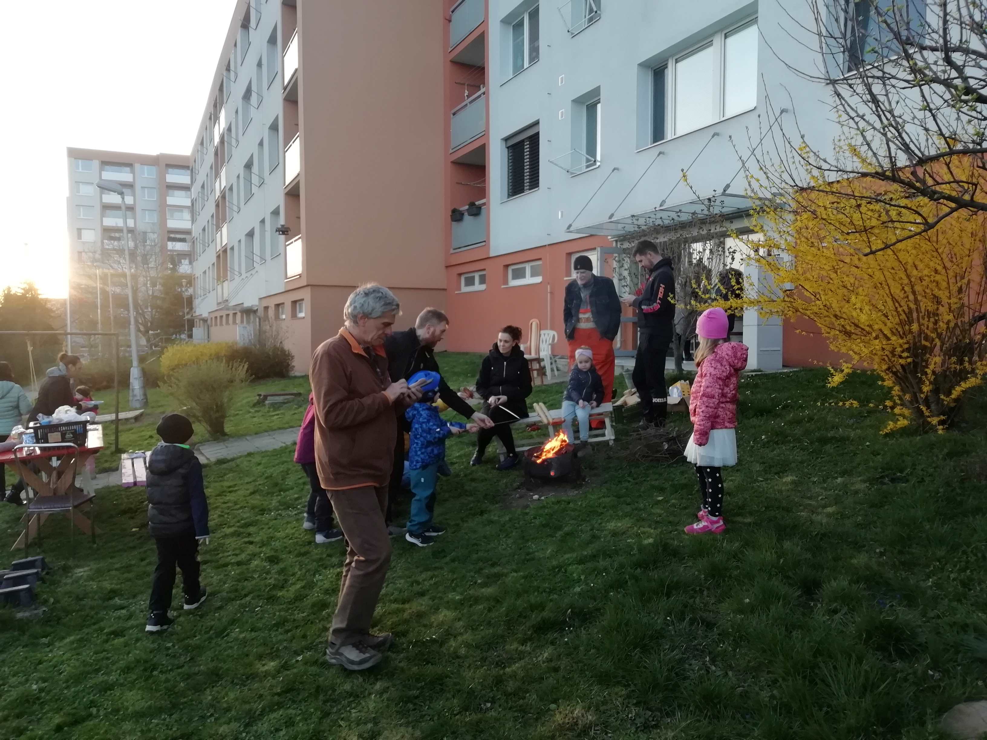 Obyvatele z Budovatelské 4814-15 podpořili v neděli 17. března i sousedé z okolních bytovek. Po úklidu, kterého se zúčastnilo osmatřicet lidí, došlo i na malé občerstvení, dětské hry, opékání špekáčků a také na plánování další akce.