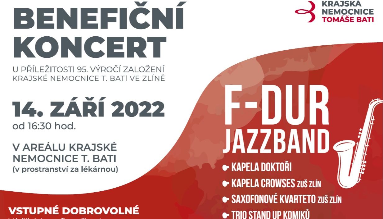 Místem konání je travnatá plocha za lékárnou. Hvězdou benefičního odpoledne a večera je kapela F-dur Jazzband, třináctičlenná špičková hudební formace ze Zlína. Dále vystoupí skvělá kapela Doktoři a talentovaní hudebníci ze Základní umělecké školy Zlín – konkrétně Saxofonové kvarteto a skupina Crowses. V jeho repertoáru jsou popové, swingové a funky skladby s přesahem do filmové hudby. Vše doplní trio stand up komiků, kteří působí zároveň jako zdravotničtí klauni. Akci moderuje Martin Pášma. Vstupné je dobrovolné, výtěžek z koncertu připadne Dobrovolnickému centru KNTB. V případě nepříznivého počasí se akce nekoná.