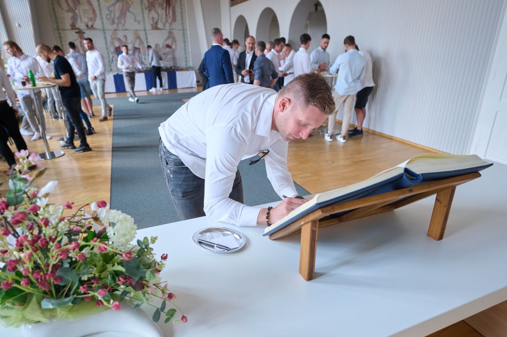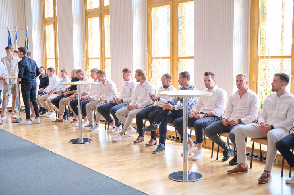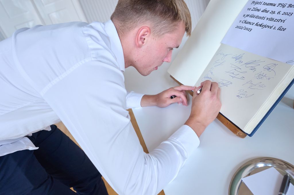 Na konci setkání se hokejisté podepsali do kroniky města Zlína a neformálně konverzovali u občerstvení.