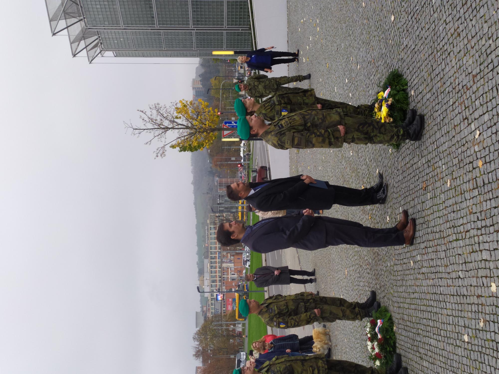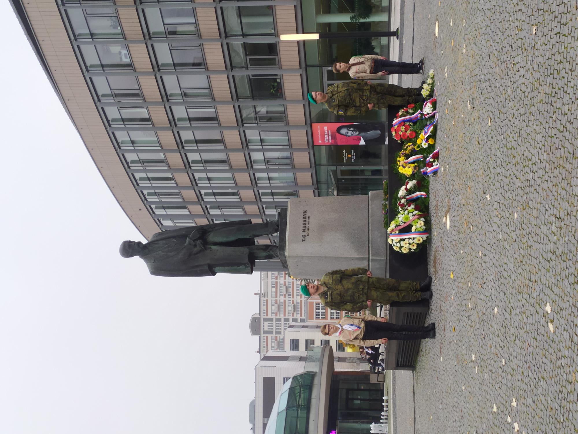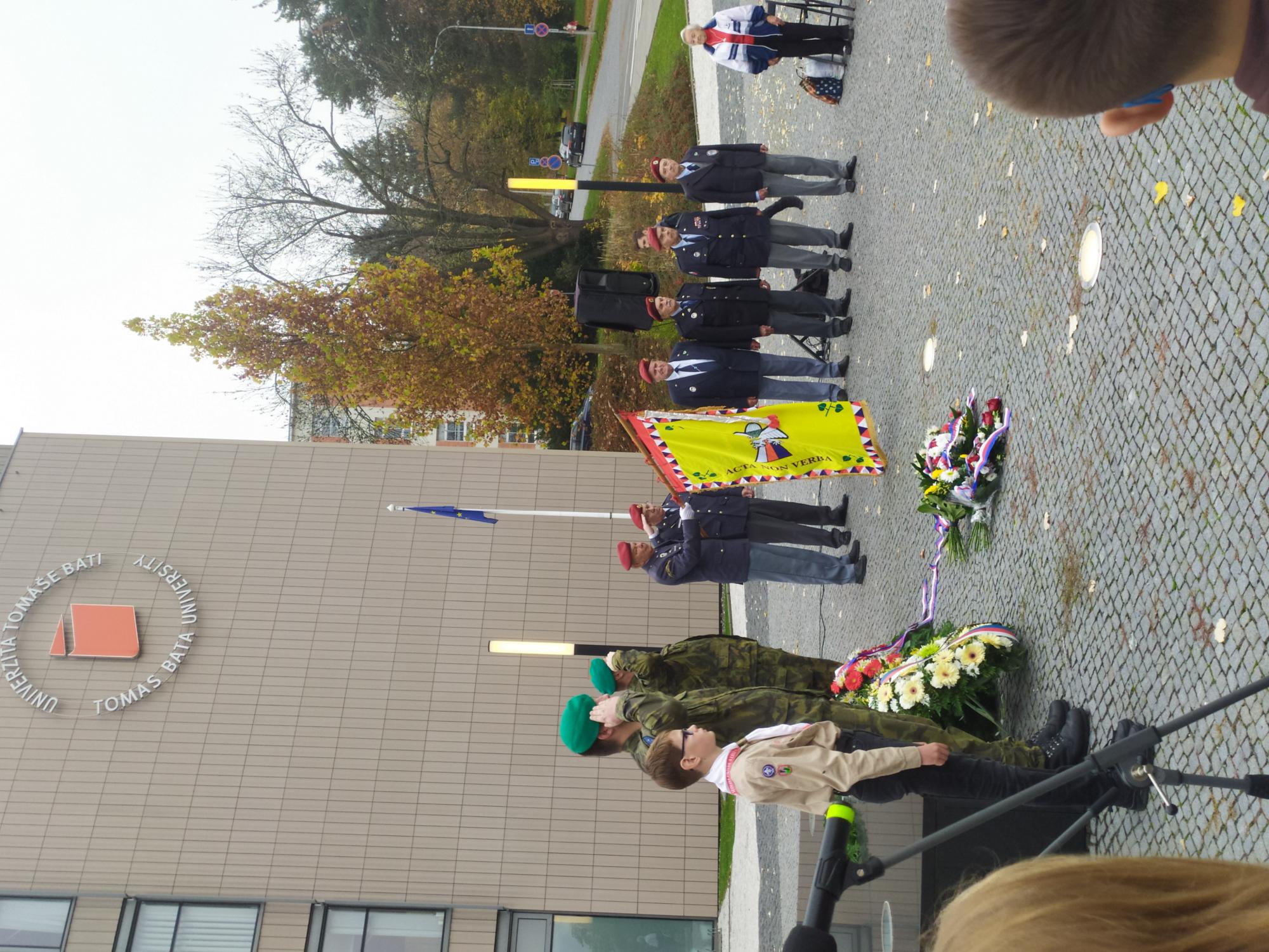 Slavnostního ceremoniálu s kladením věnců k soše prvního československého prezidenta Tomáše Garrigua Masaryka se zúčastnili představitelé města Zlína Pavel Brada a Jiří Robenek a hejtman Zlínského kraje Radim Holiš s členem Rady Zlínského kraje Zbyňkem Fojtíčkem. Dále byli přítomni zástupci Krajského vojenského velitelství Zlín, Univerzity Tomáše Bati, Policie České republiky, Hasičského záchranného sboru Zlínského kraje, Klubů veteránů ze Zlína i Holešova, Konfederace politických vězňů, Skautů, Tělocvičné jednoty Sokol Zlín a v neposlední řadě i veřejnost.