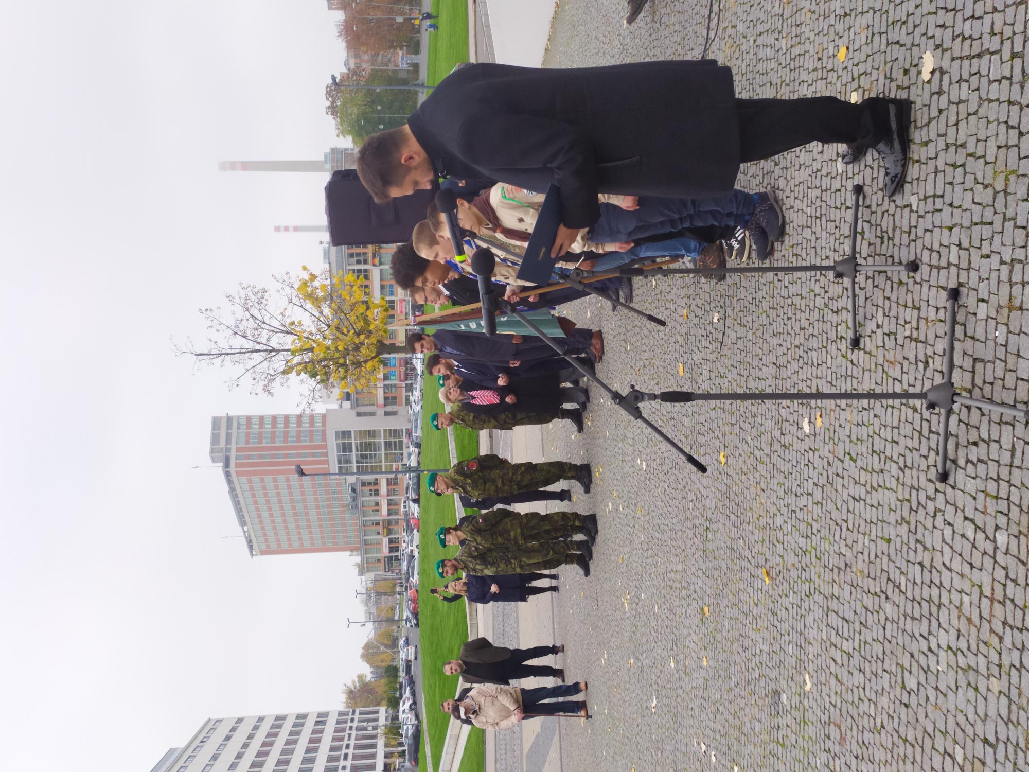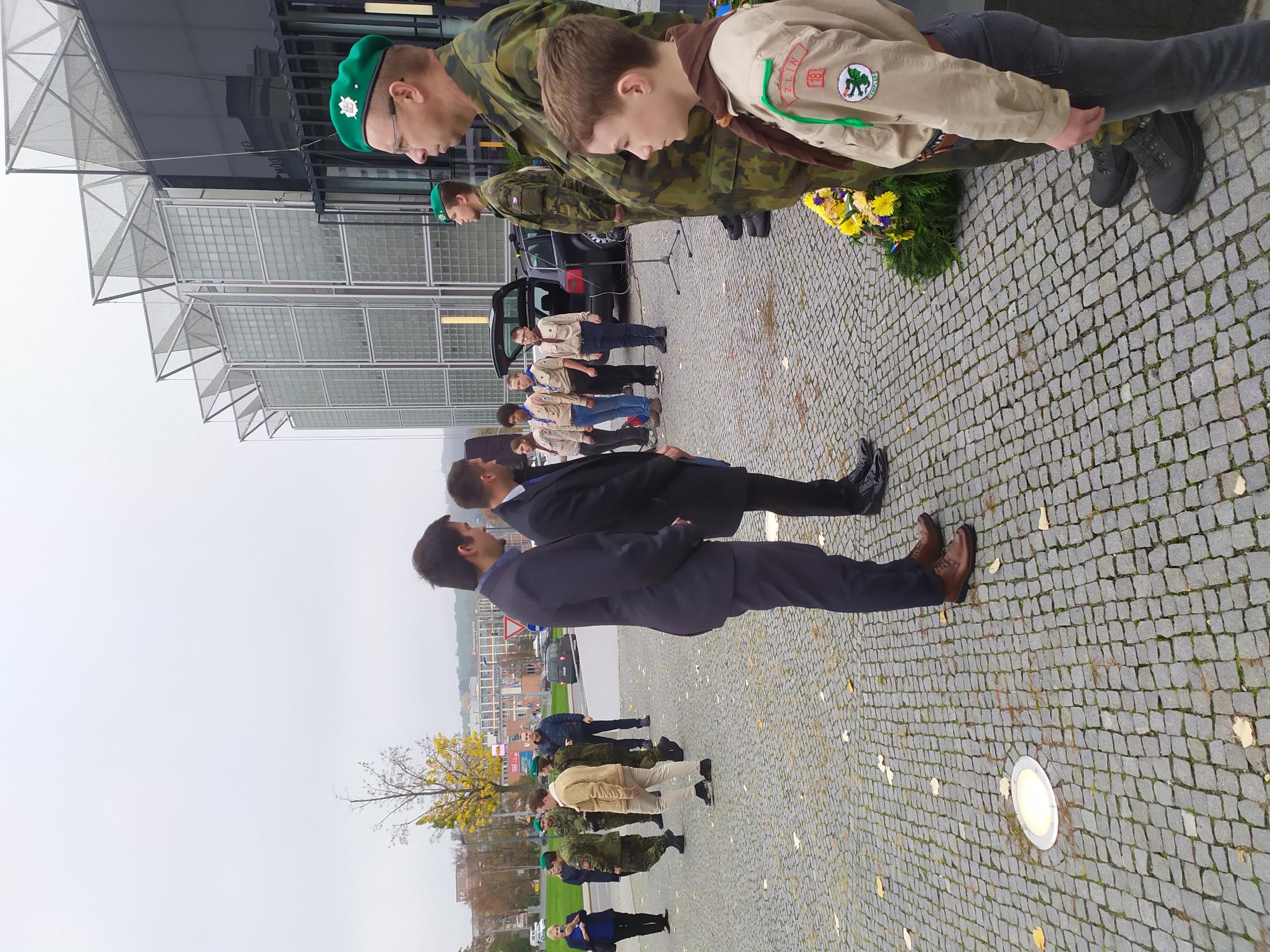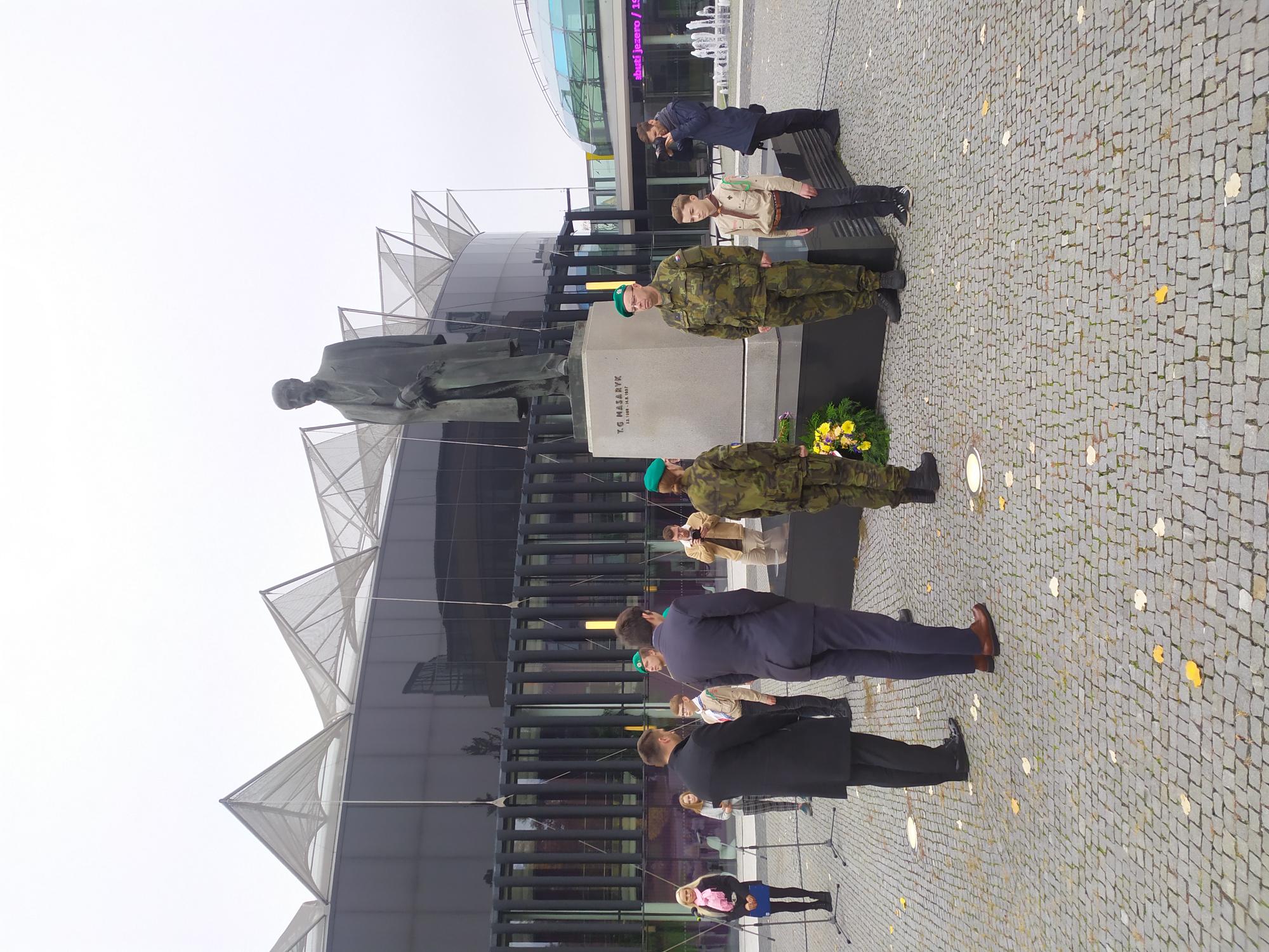 Slavnostního ceremoniálu s kladením věnců k soše prvního československého prezidenta Tomáše Garrigua Masaryka se zúčastnili představitelé města Zlína Pavel Brada a Jiří Robenek a hejtman Zlínského kraje Radim Holiš s členem Rady Zlínského kraje Zbyňkem Fojtíčkem. Dále byli přítomni zástupci Krajského vojenského velitelství Zlín, Univerzity Tomáše Bati, Policie České republiky, Hasičského záchranného sboru Zlínského kraje, Klubů veteránů ze Zlína i Holešova, Konfederace politických vězňů, Skautů, Tělocvičné jednoty Sokol Zlín a v neposlední řadě i veřejnost.