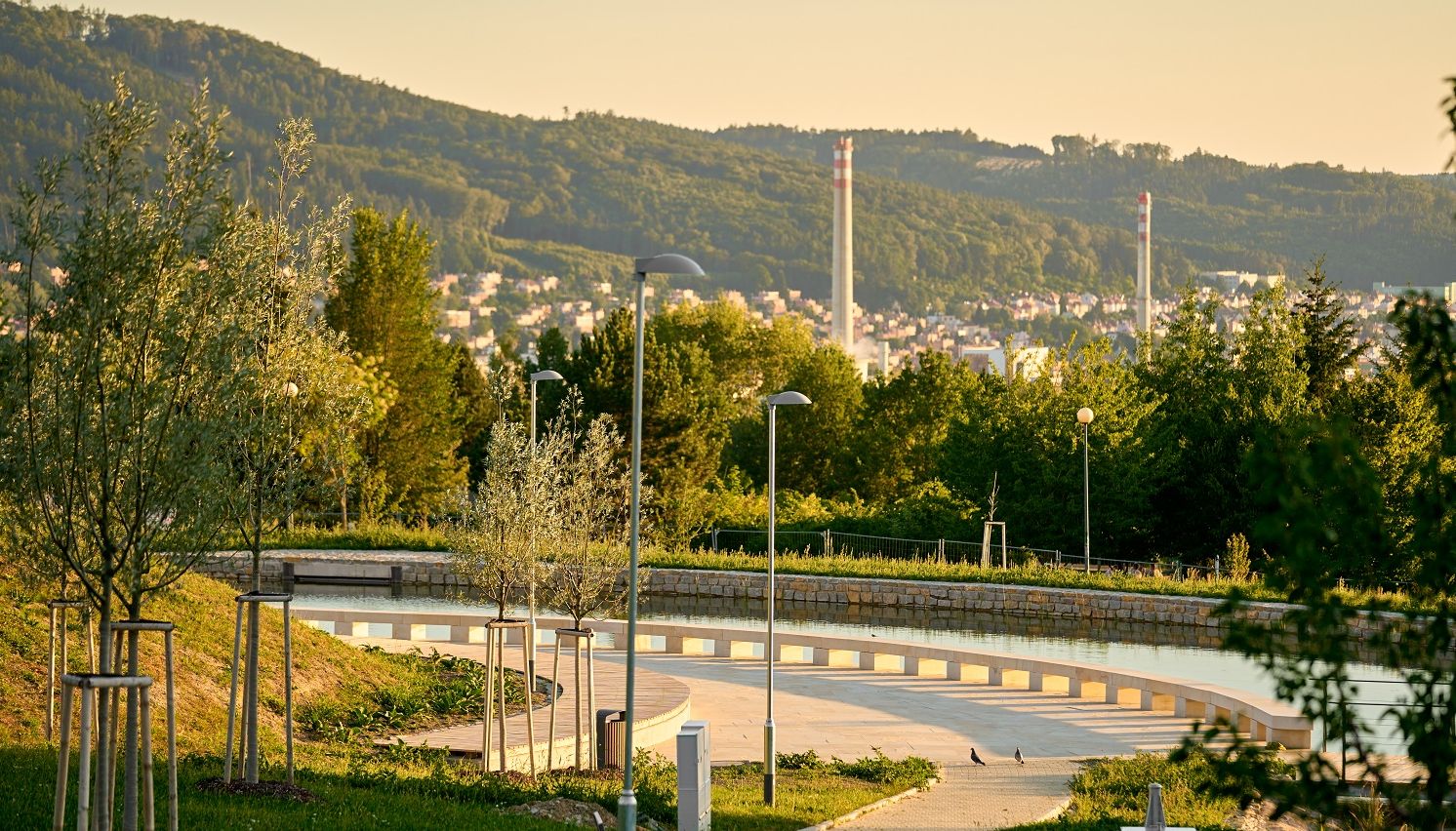 Díky vodnímu krajinářskému prvku došlo k výraznému oživení městského prostředí s plochou pro krátkodobou rekreaci. Celé území je doplněno o mobiliář, jako jsou sedací vlnovce, lehací plata, lavičky umožňující odpočinek a relaxaci.