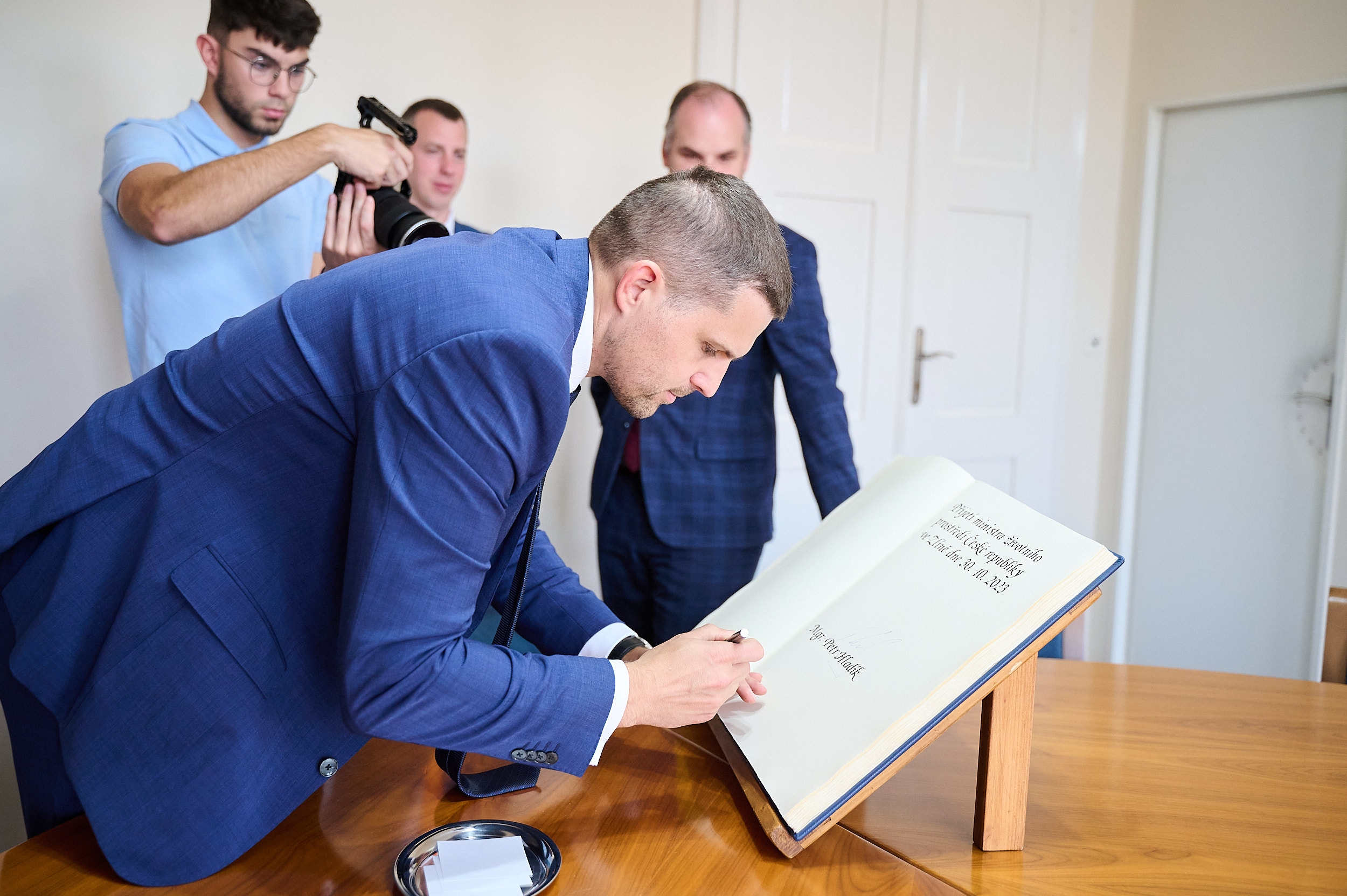 Na závěr návštěvy se ministr Petr Hladík podepsal do kroniky významných návštěv radnice a od vedení města převzal dar v podobě zlínské Navrátilovy slivovice a knihy fotografií o Zlíně.