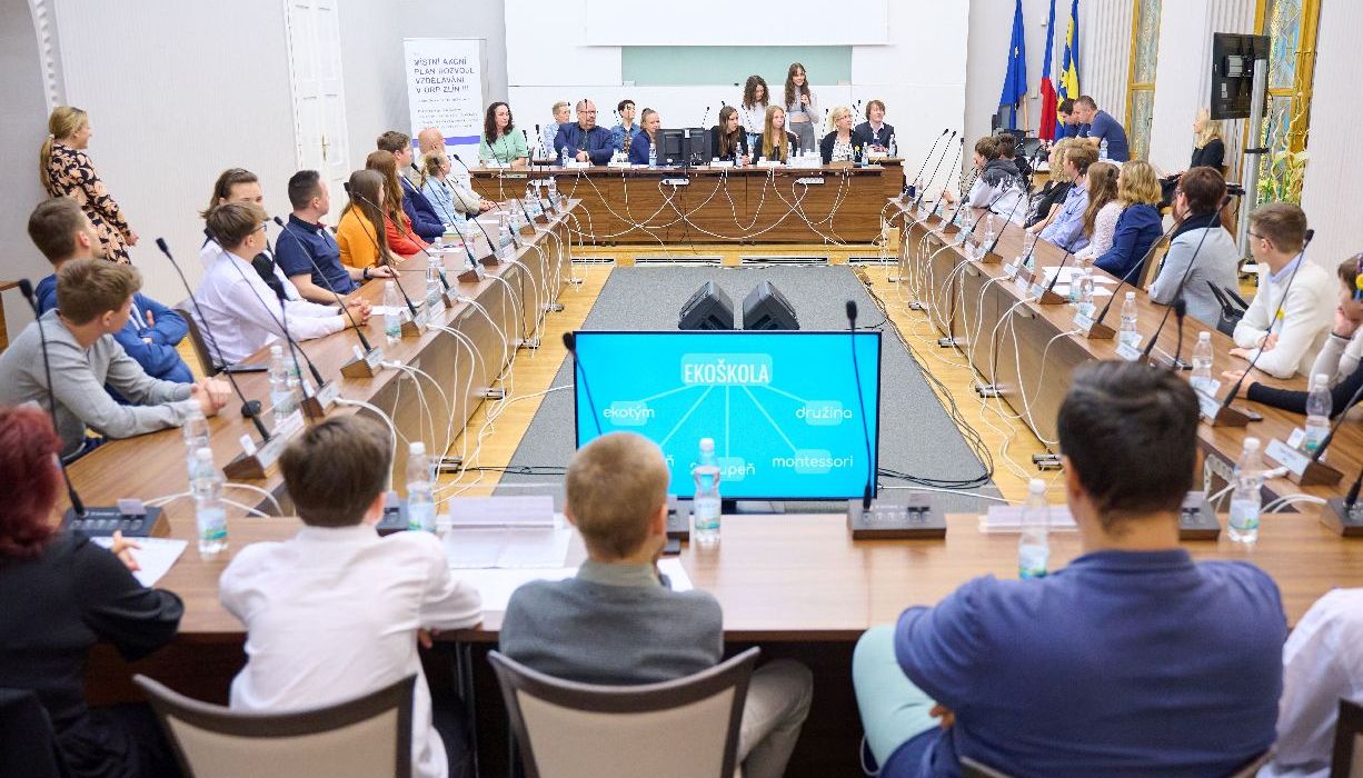 Se zástupci žáků ze všech třinácti zlínských školních parlamentů se setkali představitelé města v čele s primátorem města Zlína Jiřím Korcem.