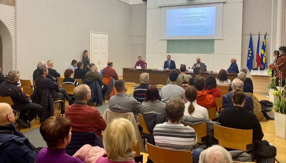 S veřejností debatovali Martin Raška, ředitel Technických služeb Zlín Jakub Černoch, náměstek primátora pro dopravu Michal Čížek a projektant Karel Říha. Na snímku v pozadí zleva.