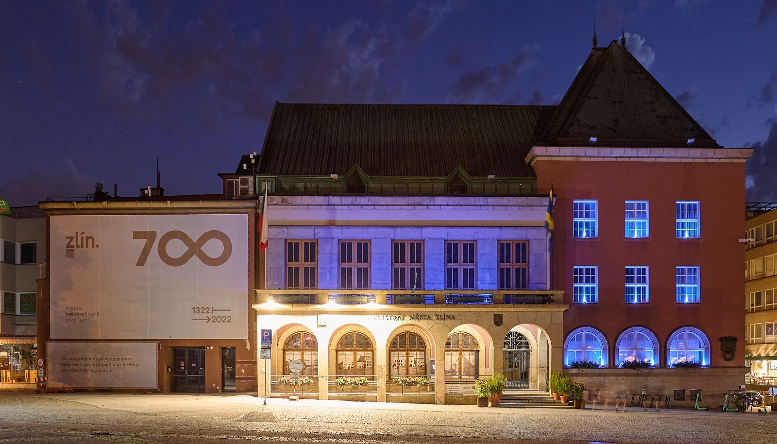 Zlín - U příležitosti předsednictví České republiky v Radě EU, které začíná 1. července, bylo 30. června večer po celé republice nasvíceno několik významných budov symbolicky do evropsky modré barvy. Připojilo se také statutární město Zlín, které nechalo modře nasvítit budovu radnice.