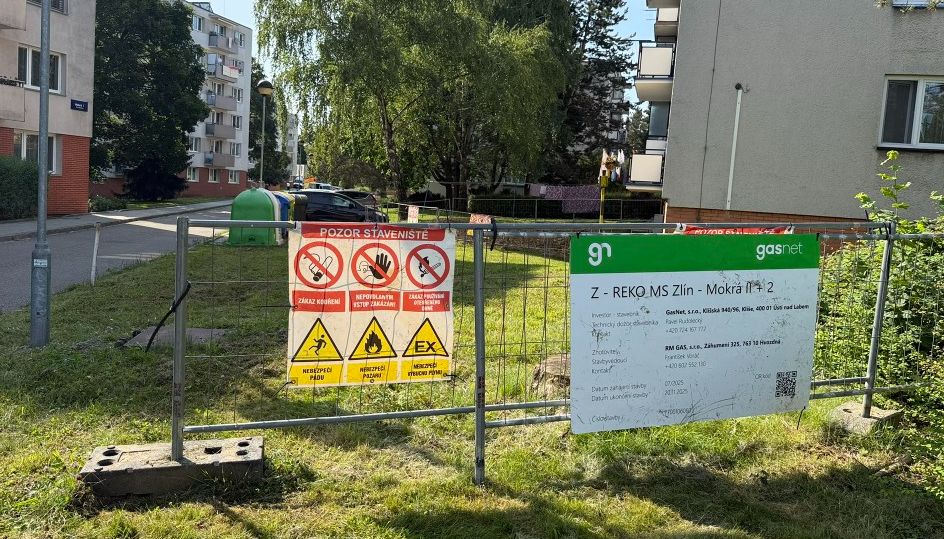 Práce před rodinnými domy v dlážděných chodnících, zelených plochách a vjezdech v těsném souběhu s ostatními inženýrskými sítěmi.