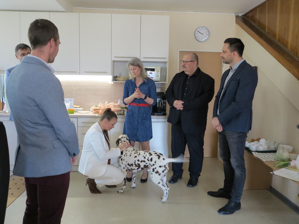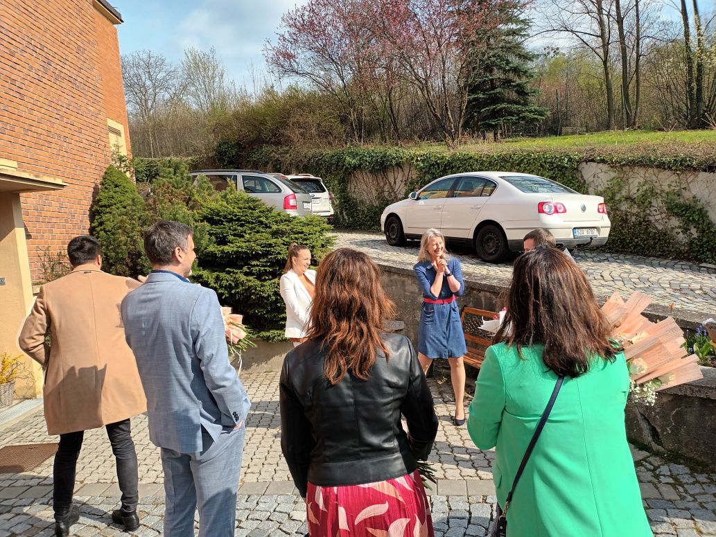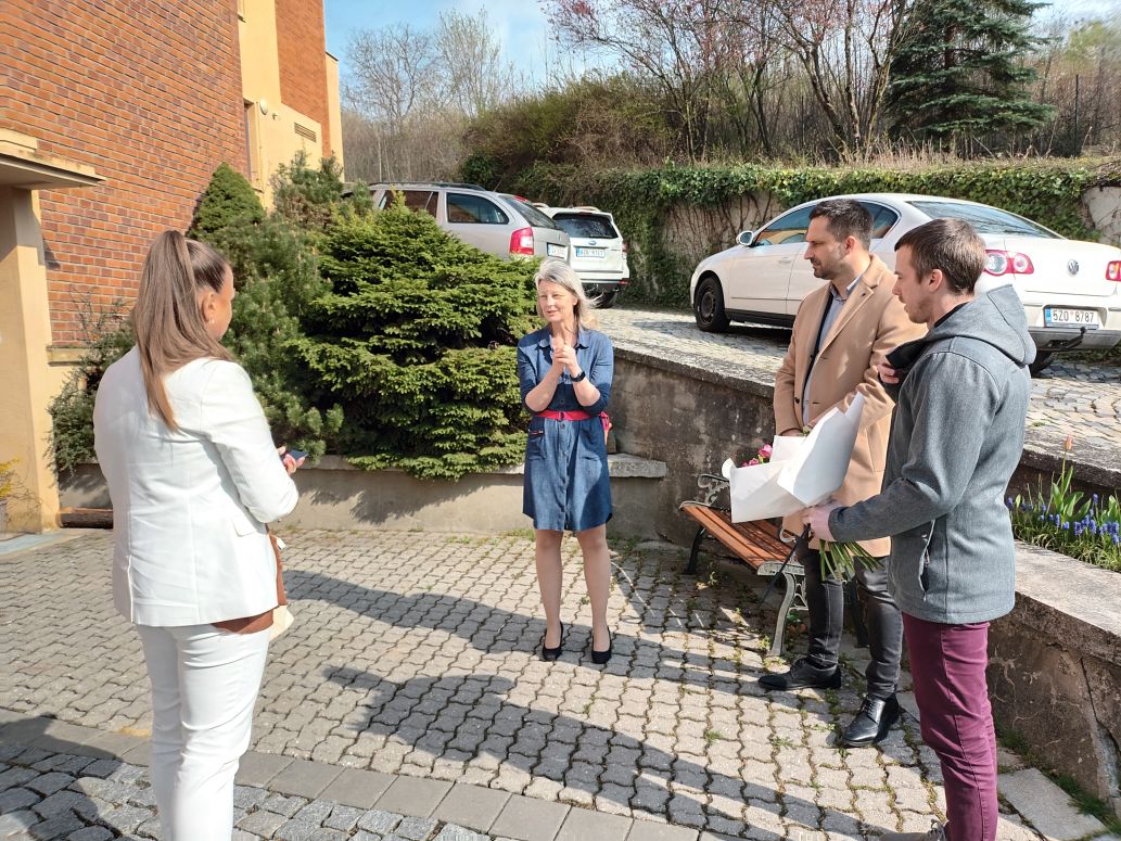 Předání kytiček a dárků pro děti se ujala náměstkyně primátora Martina Hladíková spolu s náměstkem primátora Pavlem Bradou. Návštěva z města se po setkání s dětmi zúčastnila prohlídky celé Hanzelkovy vily, v níž Rehabilitační stacionář sídlí.