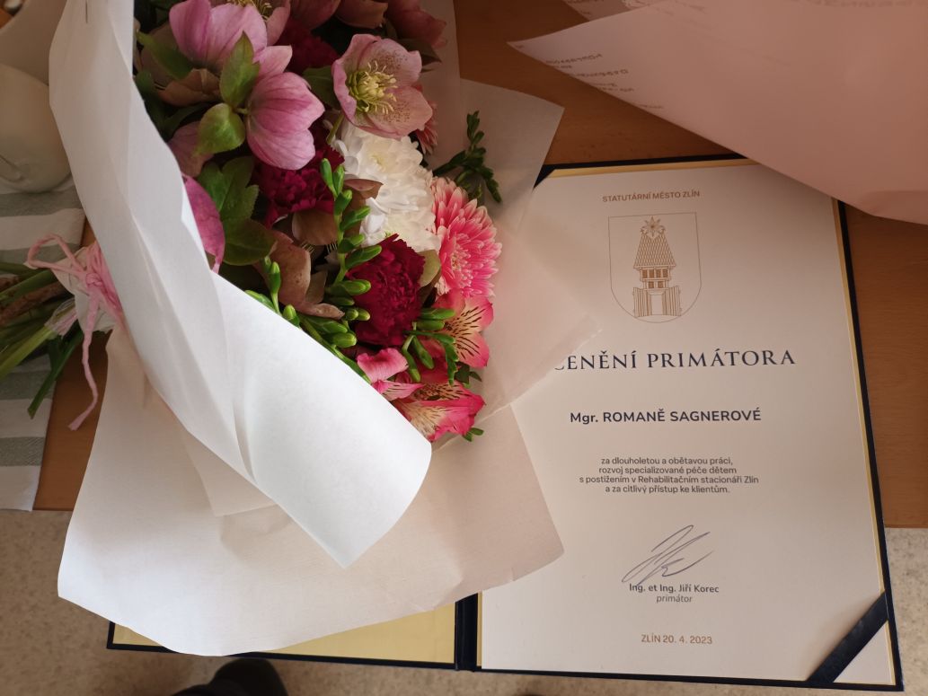 Primátor Jiří Korec jí tímto způsobem poděkoval za dlouholetou a obětavou práci, rozvoj specializované péče dětem s postižením v Rehabilitačním stacionáři Zlín a za citlivý přístup ke klientům.