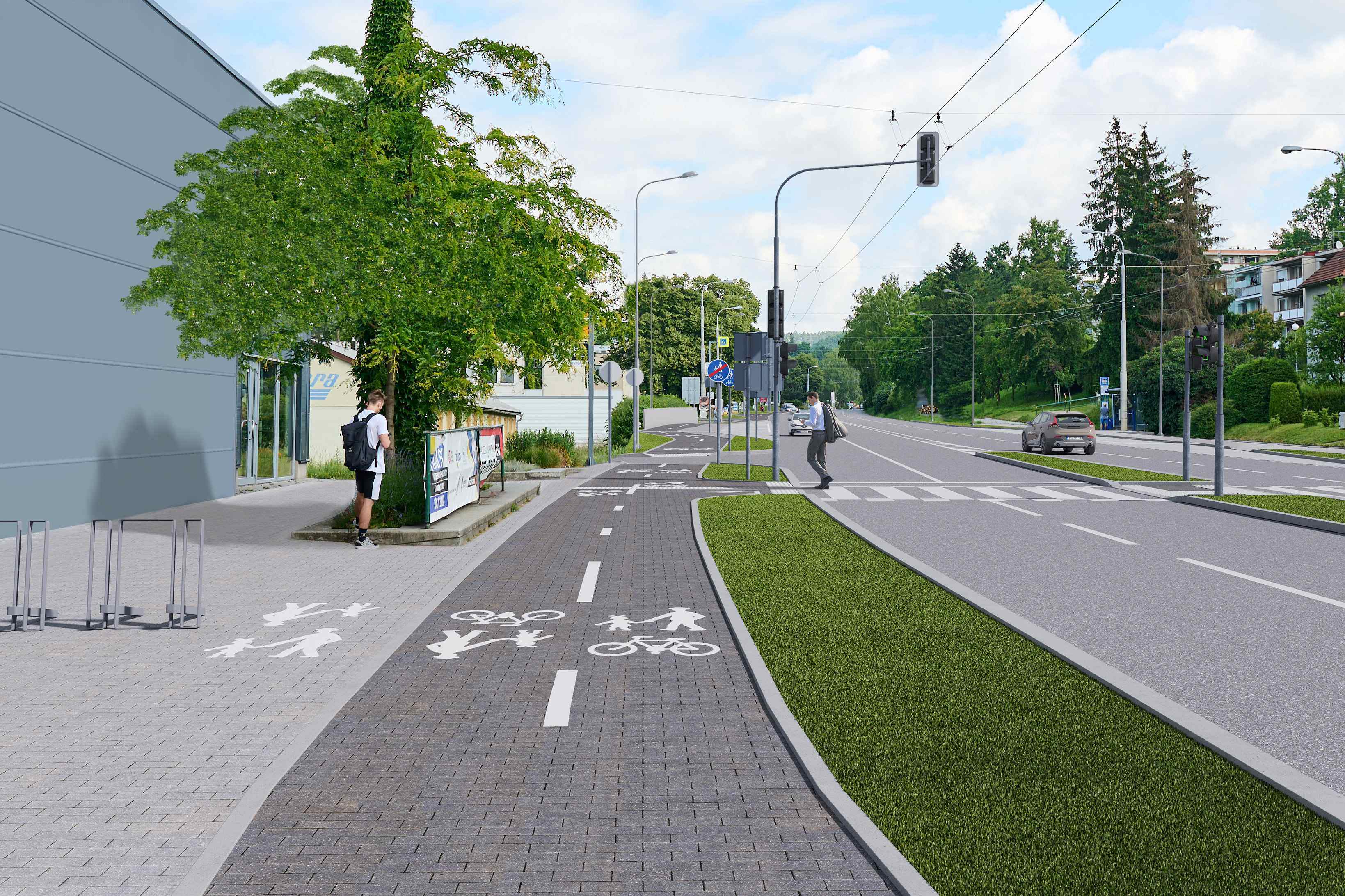 Úpravy zahrnou modernizaci trolejbusových zastávek. Součástí projektu je také výstavba dvou bezpečnějších, osvětlených přechodů pro chodce a cyklisty, z nichž jeden bude řídit semafor. Tyto změny nejenže zlepší bezpečnost, ale také usnadní pohyb a spojení mezi různými částmi města.