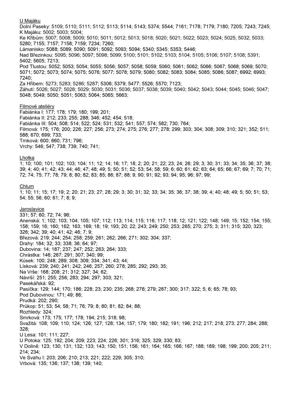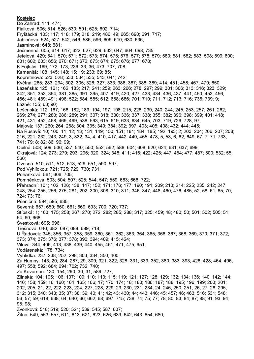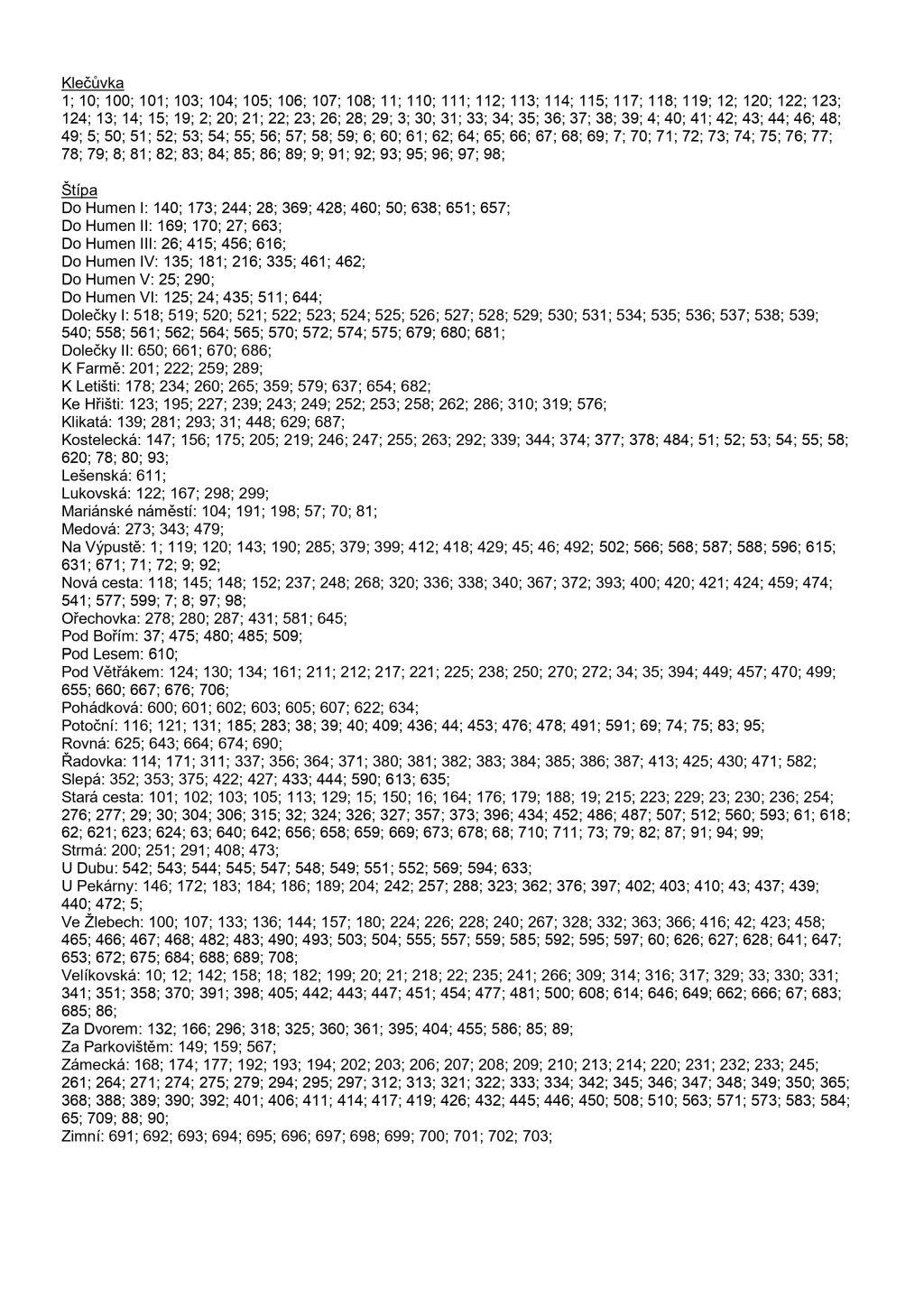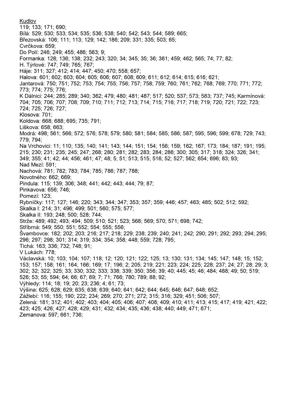 Seznam adres, které spadají do svozových lokalit, naleznete v příloze