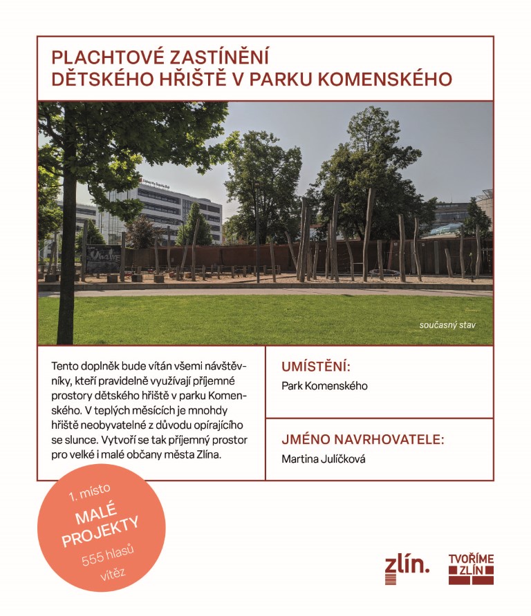 „Projekt Tvoříme Zlín umožňuje veřejnosti ovlivňovat hospodaření města s veřejnými výdaji a mě těší, že Zlíňané mají stále větší zájem o to, kam přesně se mají tyto peníze investovat. Obyvatelé totiž vědí často sami nejlépe, co je třeba v jejich bydlišti a okolí změnit. Město letošní sedmý ročník podpořilo znovu částkou sedm milionů korun a veškeré peníze budou opět vyčerpány,“ uvedla náměstkyně primátora Jana Bazelová, která má projekt v kompetenci.