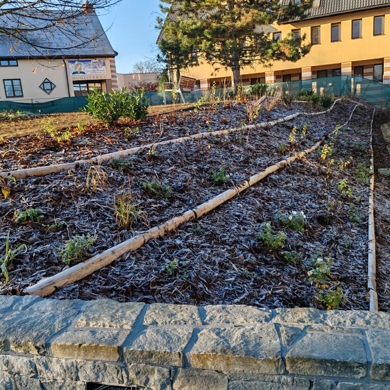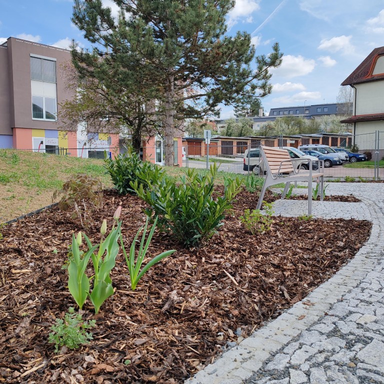 „Výsadby především keřů a trvalek spolu s novou zpevněnou plochou ze žulových odseků a mozaiky, s kamennými zídkami, fontánou a mobiliářem oživují zapomenuté místo bývalého hřbitova, jehož připomínkou jsou i nově vybudované základy bývalé kaple Sv. Rozálie,“ připomněl historii místa náměstek primátora Michal Čížek, který má městskou zeleň v kompetenci.