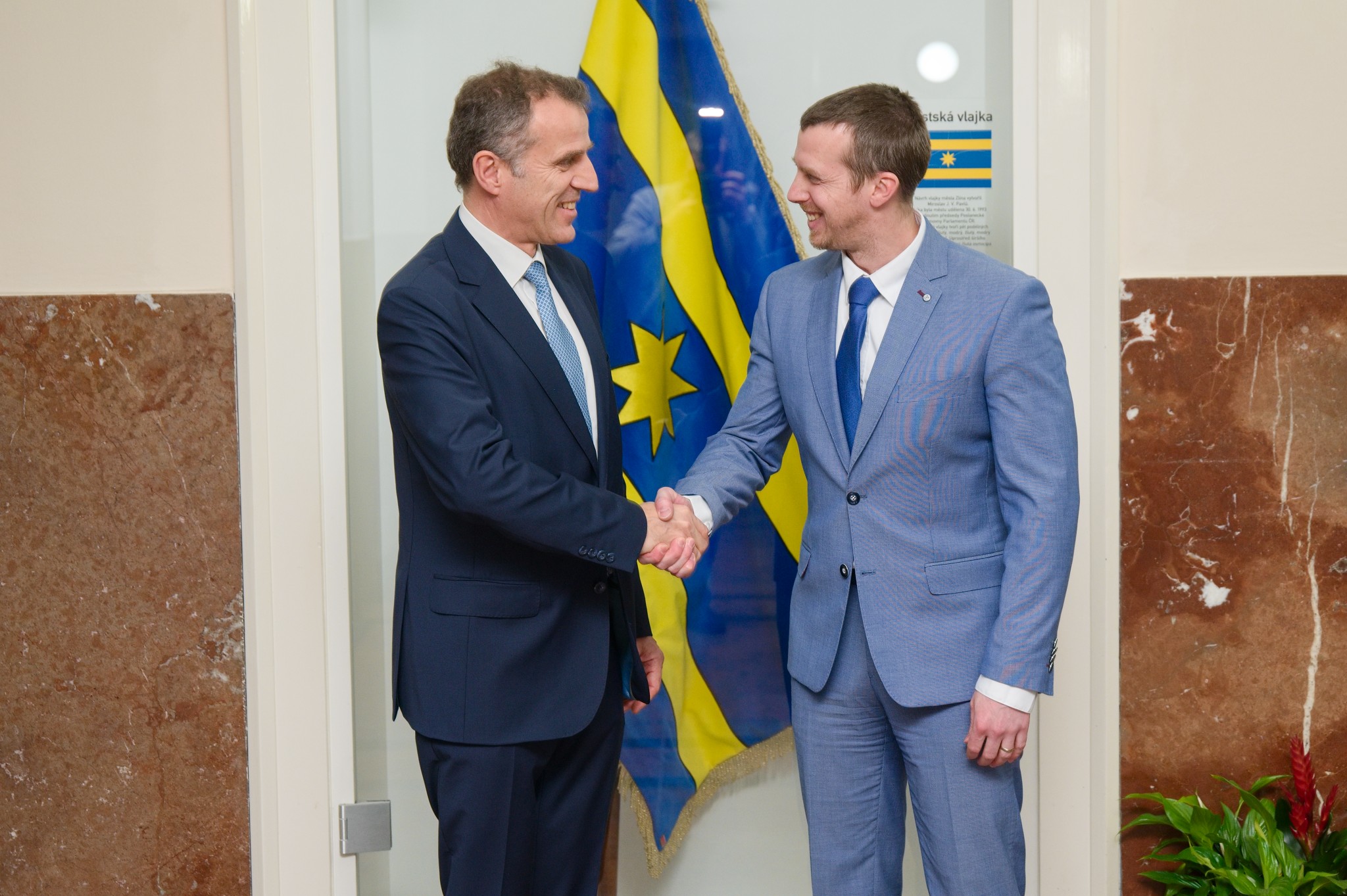 Během návštěvy zavítala francouzská delegace v čele s velvyslancem mimo jiná místa i na zlínskou radnici. Tady se velvyslanec Stéphane Crouzat setkal s primátorem Zlína Jiřím Korcem, se kterým diskutovali o stávající i další možné spolupráci mezi městem a francouzskými partnery.