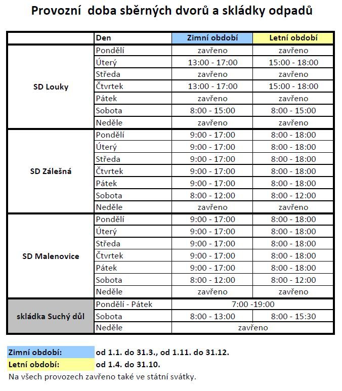 Otevírací doba sběrných dvorů: