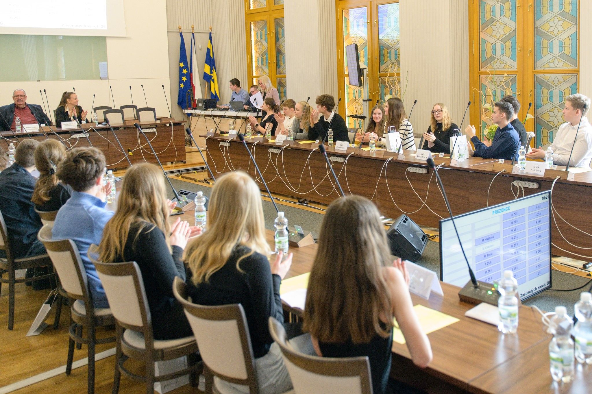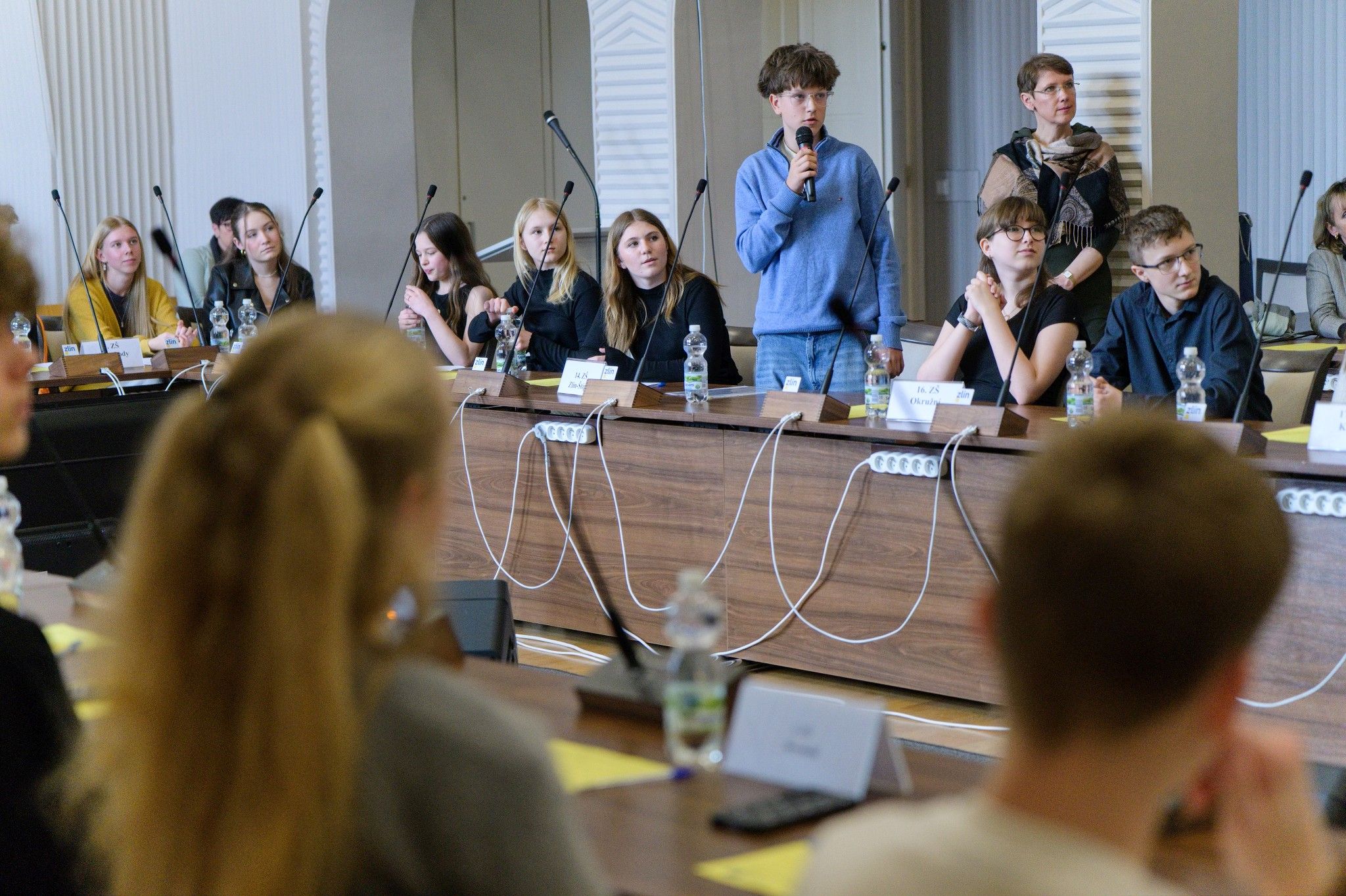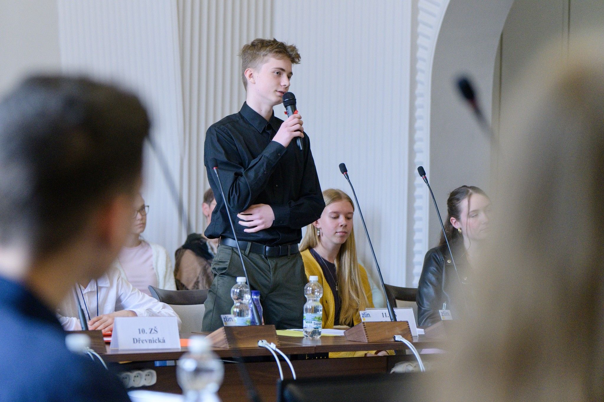 V diskusi s vedením radnice se školáci zajímali o praktický proces předkládání témat k hlasování zastupitelstva. Nebáli se však ani pokládat otázky týkající se plánovaných změn ve městě, rekonstrukce Velkého kina, modernizace nádraží či problematiky pohybu nepřizpůsobivých občanů ve Zlíně.