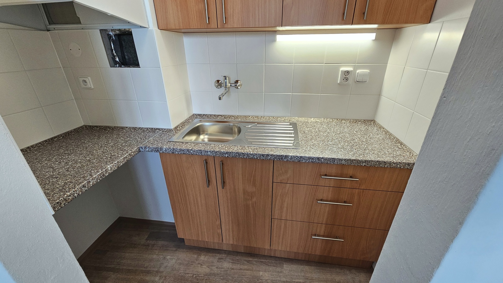 - nová kuchyňská linka s dřezem, baterií a spotřebiči (trouba, varná deska),