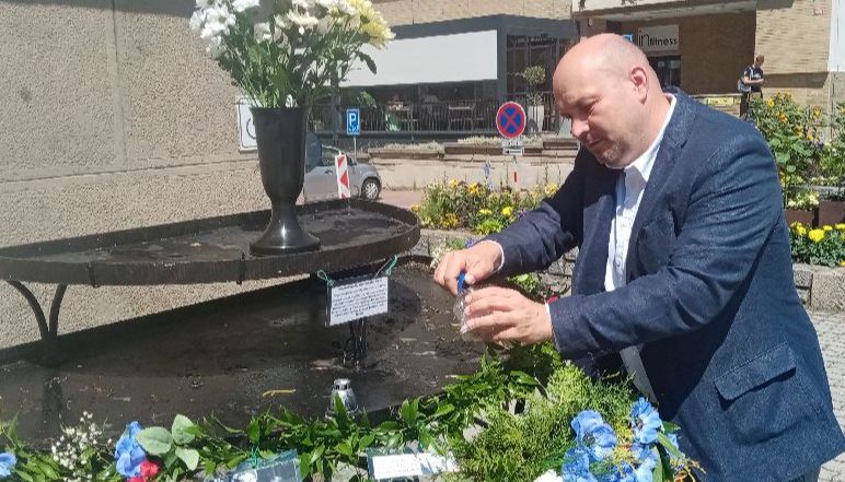 Tichý pietní akt položení květin a zapálení svíček se uskutečnil před budovou radnici, kde bylo vytvořeno vzpomínkové místo. Pomník obětem totality se nachází na čelní straně budovy radnice.