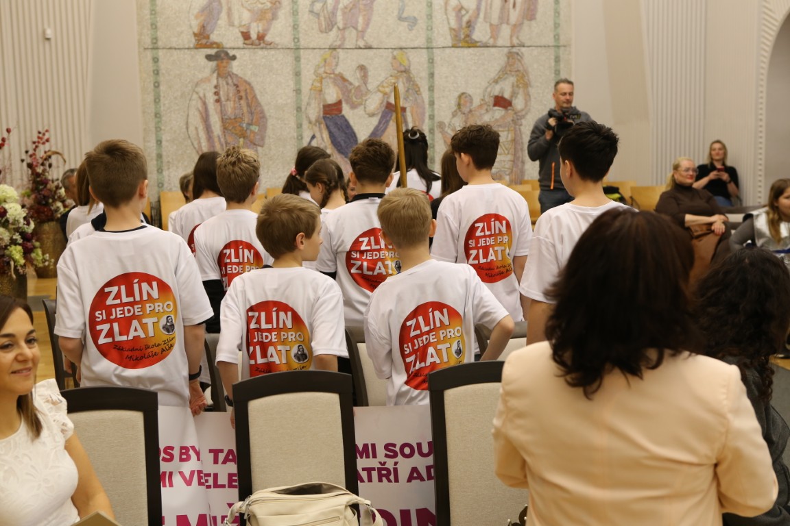 Součástí setkání na radnici bylo promítnutí sestřihu ze soutěže i živé předvedení pětiminutové scénky, se kterou se paní učitelka společně se svými žáky prezentovala ve finále. Jak uvedla čerstvá držitelka Zlatého Ámose pro rok 2026, velký podíl na úspěchu měla v souvislosti s vystoupením vychovatelka Petra Veselá, bez jejíž pomoci by se podle jejích slov jen těžko dostali až do finále. Vychovatelka přijela s několika vystupujícími žáky z 5. A podpořit svou kolegyni do Prahy už den předem, a děti na scénku připravila. V den finále pak do Prahy dorazil i plný autobus školáků ze Zlína. Mezi fanoušky soutěžící učitelky nechyběla ani ředitelka Alena Grajciarová.