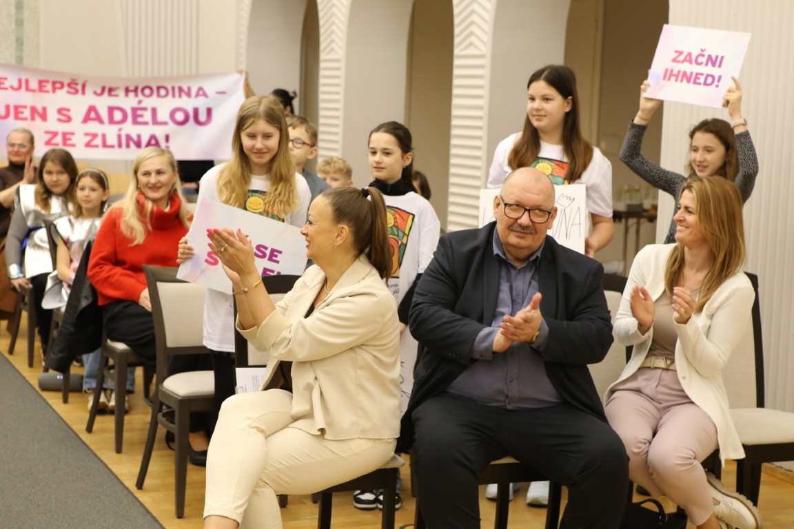 Společně s ní dorazili do obřadní síně také žáci z 5. A, kterým nechyběly transparenty fandící jejich třídní učitelce, dále ředitelka školy Alena Grajciarová a vychovatelka školní družiny Petra Veselá.