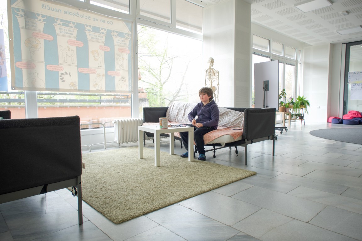 Specifikem je pak takzvaná zašívárna – prostor pro děti, který má vlastní pravidla. „Unikátnost zašívárny spočívá v tom, že si v ní pravidla určují děti samy. Dokud se na nich nedomluví, prostor se z principu vůbec nepoužívá,“ vysvětlil Jakub Boháč, člen vedení zlínské ScioŠkoly. Škola reflektuje i moderní trendy v praktickém provozu – toalety jsou společné a povalující se batohy žáci i dospělí dávají do regálů podél jedné ze stěn.