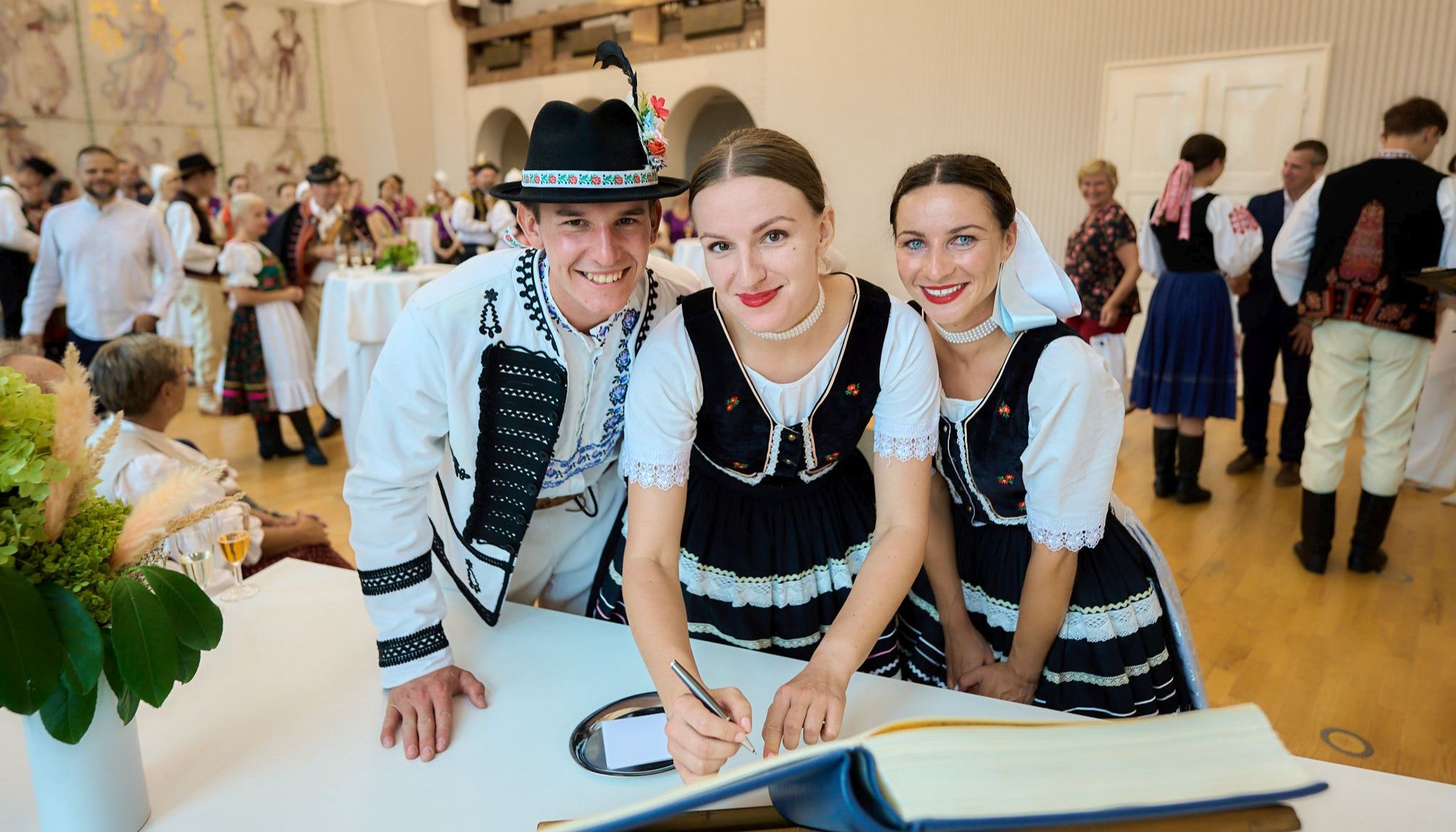 Významného přijetí v obřadní síni zlínské radnice se dostalo třinácti krojovaným souborům, kterého se ujal primátor města Zlína Jiří Korec spolu s náměstkyní Martinou Hladíkovou.