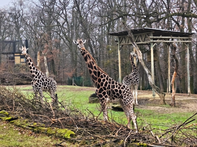Desetiletá samice žirafy Rothschildovy přicestovala v úterý 9. prosince v odpoledních hodinách. „Speciální transportní přívěs jsme před výběhem žiraf zapojili za náš traktor, který pak s přívěsem přijel až k samotnému pavilonu. Samozřejmě to vzbudilo zájem i u našich žiraf, takřka nehnutě vše z pavilonu pozorovaly. Ema vystoupila z transportního přívěsu záhy po jeho otevření a velmi klidně prošla až do pavilonu. Ihned se začala očichávat s ostatními žirafami,“ popsala příjezd nové žirafy chovatelka Kateřina Žatecká. První den byla nová žirafa oddělena od samice Kamily a samce Zula, následující den chovatelé skupinu spojili. „Vše proběhlo velmi poklidně, všechny žirafy tak mohly společně vyjít i do venkovního výběhu. K naší radosti samec Zulu od prvních momentů projevoval o Emu velký zájem, vkládáme do nich velké chovatelské naděje. Ema se jeví jako velmi perspektivní samice,“ doplnila Žatecká.