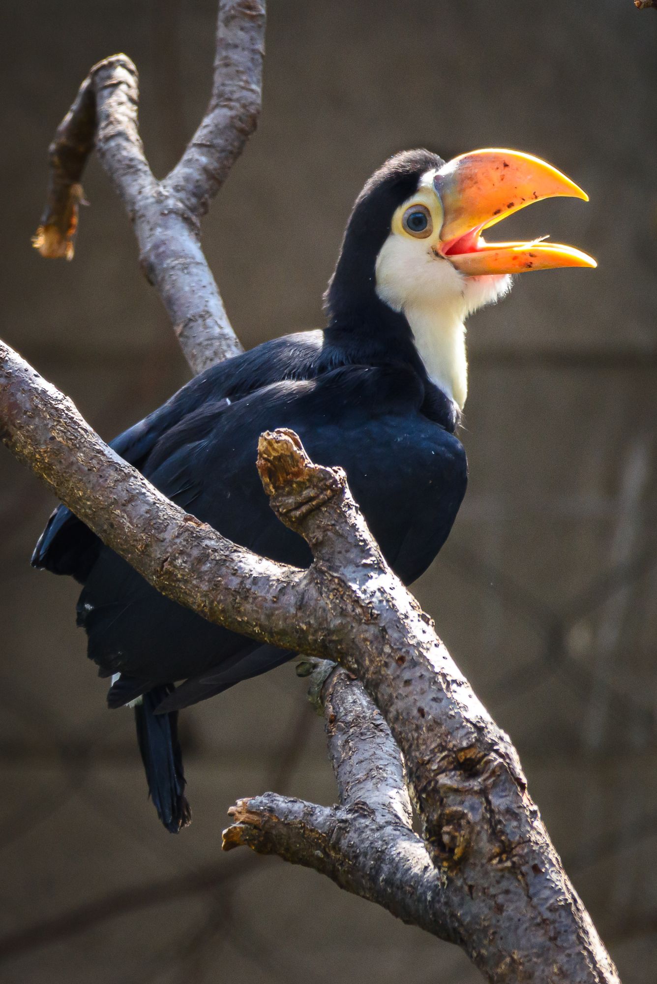 Tukan obrovský je největší z více než čtyřiceti druhů tukanovitých ptáků. I když to na první pohled nevypadá, tukani jsou nejbližší příbuzní našich datlů a strakapoudů. Ve volné přírodě tukani obrovští obývají tropické lesy Jižní Ameriky, zejména oblasti Brazílie, severní Argentiny a Paraguaye. Charakteristickým znakem je obrovský, přesto lehký zobák, který měří až dvacet centimetrů a tvoří tak téměř polovinu délky těla. Slouží nejen ke sběru potravy, ale také k termoregulaci nebo komunikaci s ostatními jedinci. Nejvíce času tráví v korunách stromů, kde se pohybuje zejména mohutnými přískoky. Bez pomoci křídel překoná i více než metrovou vzdálenost.