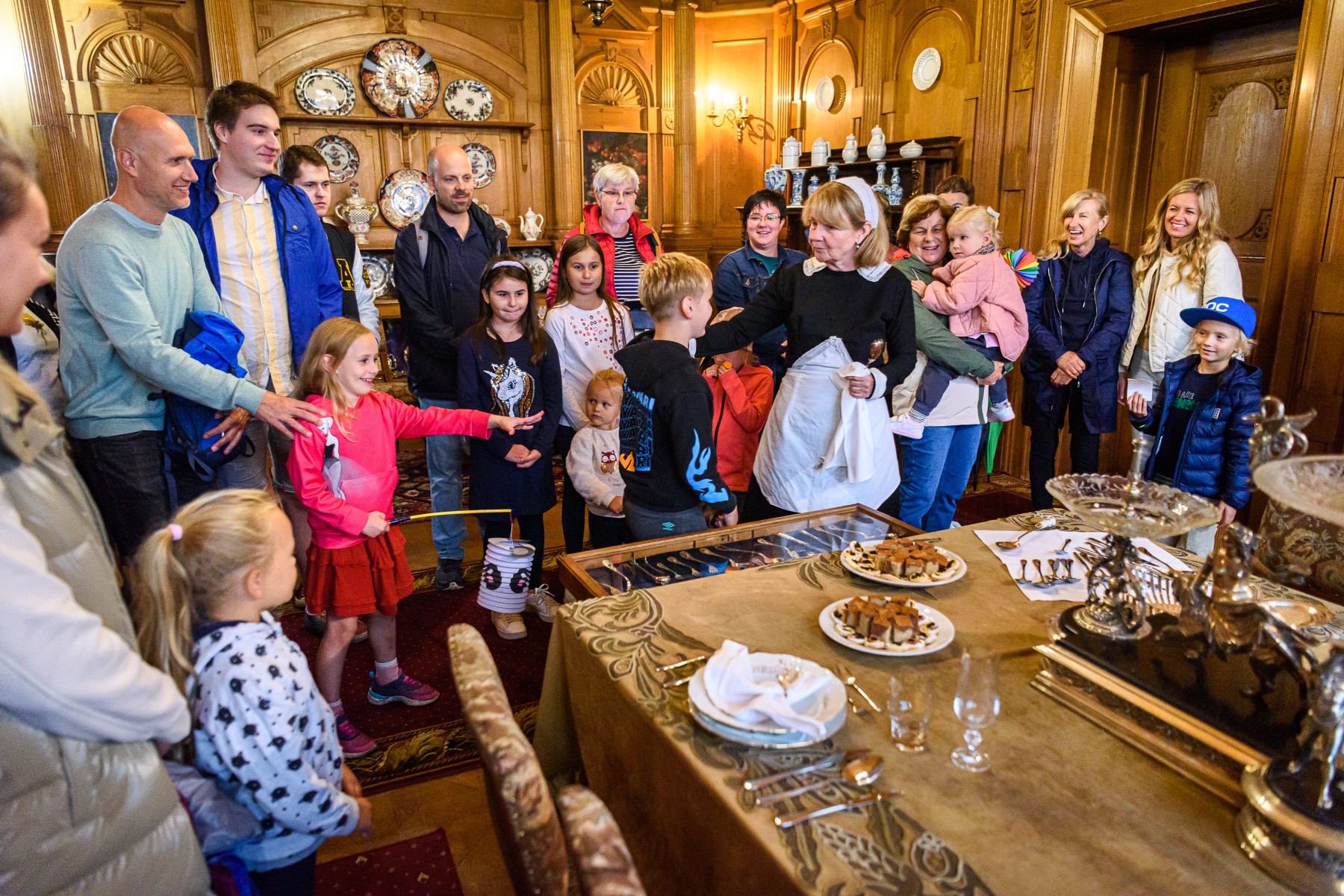 Průvodci zámku Lešná připravili atraktivní téma prohlídek. „Přeneseme vás do roku 1920. Hraběnka Seilernová slaví kulaté narozeniny, na zámku se chystá hostina pro 300 hostů. Vše je připraveno, kam ale zmizel velkolepý narozeninový dort? Uvidíme, jestli se návštěvníkům společně s nečekanými postavami v roli průvodců podaří přijít záhadě na kloub. Podezřelí jsou totiž všichni, kteří se ocitli v blízkosti dortu,“ nastínila pojetí prohlídek Romana Mikešová. První speciální prohlídka zámku začne v 18 hodin, další budou následovat po dvaceti minutách, ta poslední bude ve 20.40 hodin. Zoo kvůli limitované kapacitě prohlídek doporučuje zakoupit si on-line vstupenky (odkaz na prodej zde)