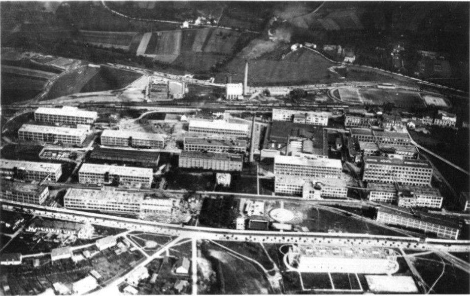 Základem nového města se stala továrna. Počáteční fáze neplánovitého rozvoje továrny vyvrcholila výstavbou první tovární budovy naznačující pozdější pojetí výrobních budov. Účast architektů zde ještě není zaznamenána, i když Gahurova spolupráce od 20.let 20.století je velmi pravděpodobná.