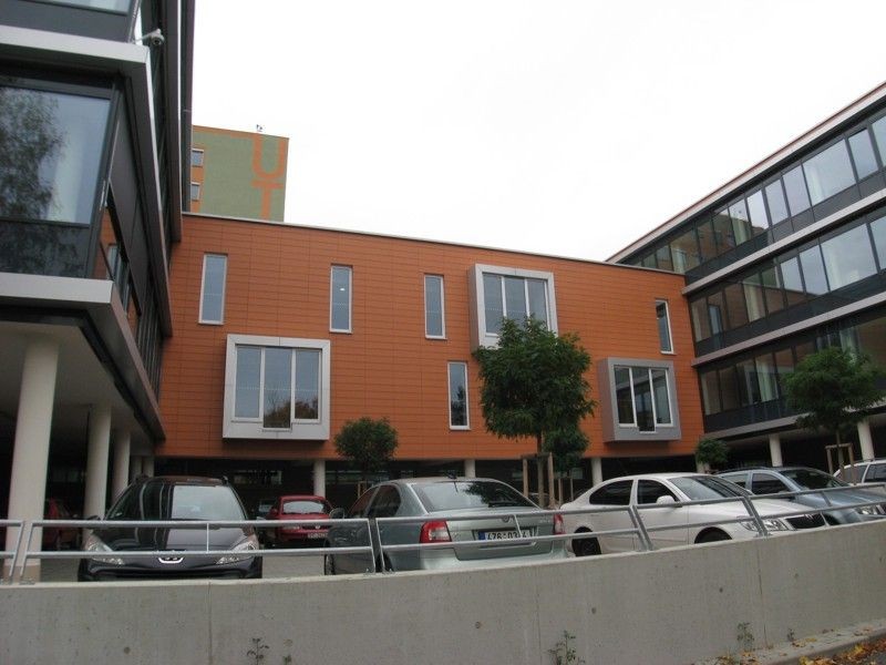 Objekt vyrost vedle univerzitního areálu v ulici Nad Stráněmi na Jižních Svazích.