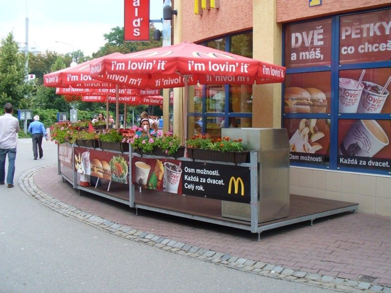 Konstrukce zábradlí nesmí sloužit jako podklad pro umístění plošné nebo prostorové reklamy dalšímu subjektu či osobě. Tuto lze použít pouze částečně k označení provozovny.