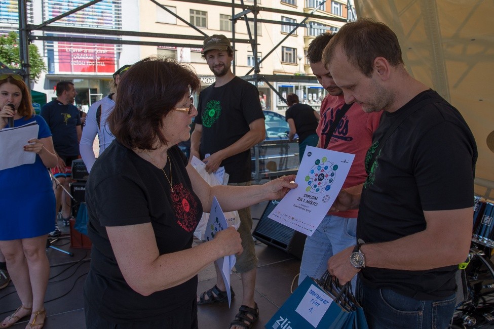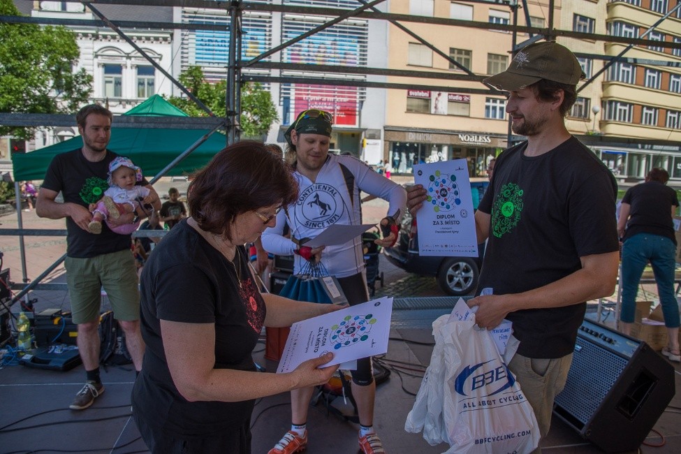 Slavnostní vyhlašování vítězů soutěže Do práce na kole proběhlo tentokráte na zlínském náměstí Míru v úterý 7. 6. 2016 v odpoledních hodinách. Na návštěvníky jak z řad soutěžících, jejich podporovatelů a rodiny, tak široké veřejnosti čekal pestrý program, jehož hlavním aktem bylo vyhlášení výherců. Vyhlašováno bylo celkem 7 soutěžních kategorií, ceny věnovali města Zlín a Otrokovice a další podporovatelé soutěže. Příjemnou atmosféru celého odpoledne doplnilo hudební vystoupení skupiny Traverz.