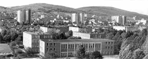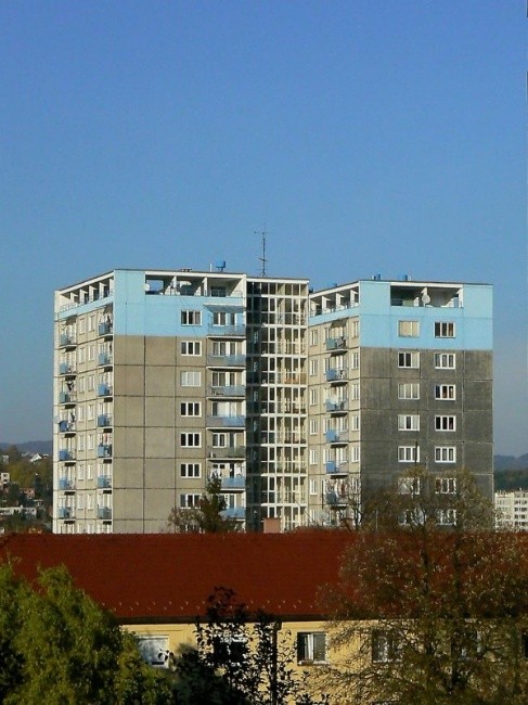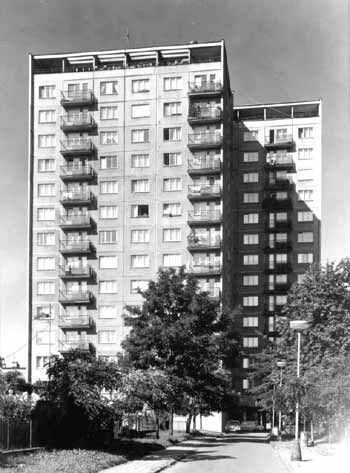 Výstavbou tří výškových domů se dotváří údolní pátěř výškových dominant města podle územního plánu z roku 1959. Jsou to patnáctietážové obytné objekty s příčným panelovým systémem, přičemž první podlaží je z monolitického železobetonu. Každý dům má 104 byty a tři ateliery, v každé etáži je jedna svobodárna, jeden jednopokojový byt, jeden dvoupokojový, čtyři třípokojové a jeden čtyřpokojový byt. Průměrná obytná plocha je 39,6 m2. Architektura objektu a struktura fasád se snaží o výtvarnější pojetí paneláku a je zde patrná tendence k překonání konstruktivistických tradic dosud realizovaných městských staveb.