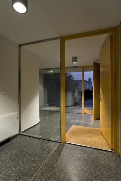 Po konstrukční stránce je budova kombinací zděné a železobetonové monolitické technologie. Charakteristické je střídmé používání materiálů: hladká světle šedá omítka, smrková okna v přírodním odstínu, žárově zinkované ocelové prvky, pohledový beton, lité teraco apod.