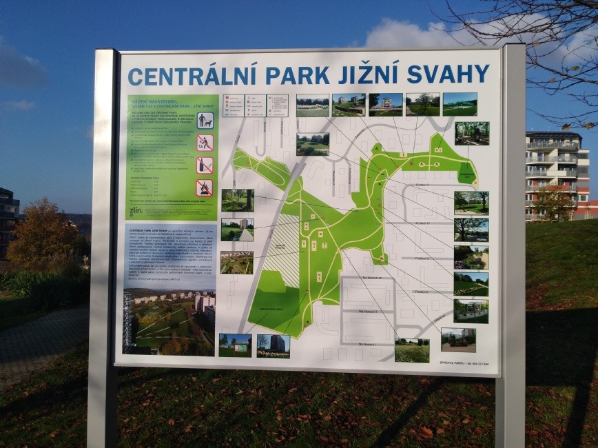 Centrální park Jižní Svahy se nachází v horní části největšího zlínského sídliště. Rekreační plocha zeleně o rozloze 11 ha spojuje území tzv. II. etapy JS (od ul. Česká a od ul. Hony) s novou bytovou zástavbou na Podlesí a hlavně s plochou lesa, který je východištěm turistických cest.