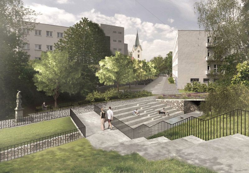 - kvalitní parkový veřejný prostor s významným podílem stromů, místo setkávání,