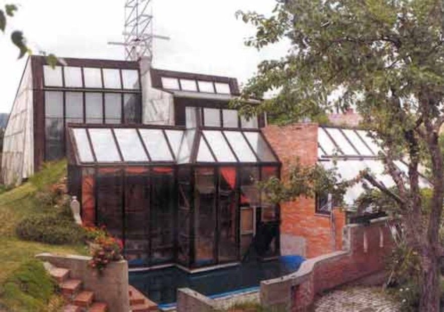 V malé vesnici Ostrata u Zlína stojí dnes jeden z mála realizovaných názorů na ekologický domek v Čechách, který byl oceněn druhým místem v soutěži rodinný dům 1980-1990. Blízko lesa si tu postavili dům manželé - architekti podle svých představ. Dali si za úkol komplexně vyřešit problém úspornosti, ekologické nezávadnosti a zdravého bydlení vůbec.Vyloučili použití oceli a dům zrealizovali pouze z tradičních materiálů (plná cihla, dřevo, beton). Využili sluneční a větrné energie a bioplynu. Hlavní obytná část je soustředěna v trojlodí valených cihelných kleneb, orientovaných severojižně. Jižní strana je prosklená, ostatní zaklenuté. Celá klenutá část je jeden až jeden a půl metru zapuštěna pod úroveň terénu a zasypána zeminou. Z tohoto travnatého pahorku vyčnívají dva zkosené posunuté kubusy s dílnou, ateliérem a ložnicí. Celé jižní průčelí je tvořeno skleníkem. Osobitost interiéru dotváří i zčásti podomácku vyrobený nábytek. Jak exteriérem, tak i interiérem a použitými technologiemi se dům naprosto vymyká běžné představě o bydlení.