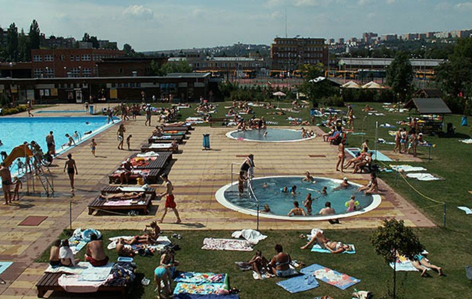 Městské koupaliště s tobogány, skluzavkami, vířivkou a travnatou plochou pro relexaci a opalování se nachází ve východní části města Zlín, v těsné blízkosti Městské sportovní haly.
