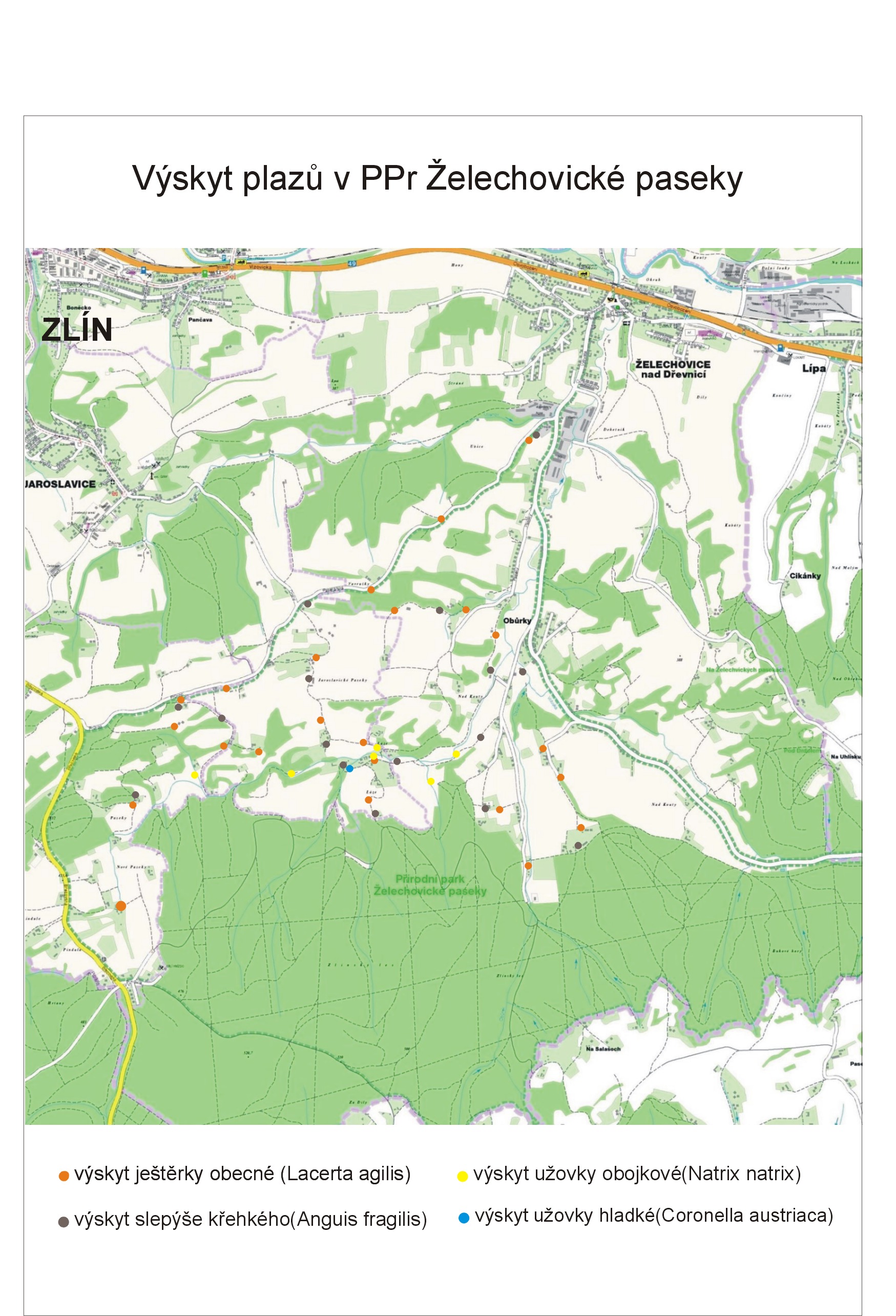 0.27MBMapování herpetofauny Želechovické paseky 2012 - mapa výskytu
