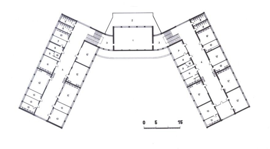 V roce 1928 byly realizovány Masarykovy školy podle návrhu F. L. Gahury. Situování školy a půdorys tvaru "U" s centrálním nástupem byl podřízen regulační koncepci města. Striktní ekonomický požadavek použít ocelové montované bednění prvních továrních objektů - ještě s hranatými sloupy - ho kupodivu neomezoval, naopak mu pomohl vytvořit nové dispoziční hodnoty - trojtrakt - a nový výraz veřejné zlínské architektury.Maximální prosvětlení objektu bylo například řešeno úspornými nosnými vertikálními sloupy,střídanými se sloupky cihelnými.