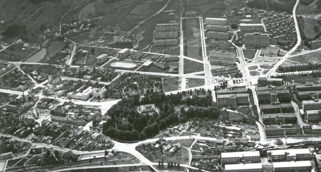 Ve 20. letech 20. století dochází k prudkému rozmachu firmy Baťa. Objevují se první zprávy o budování Zlína jako zahradního města, zeleni je věnována velká péče. Udržení čistoty města a náklady na výsadbu a údržbu zeleně tvoří třetí největší položku v rozpočtu města. V roce 1927 se objevují první plány rozvoje zelených ploch od Františka Lydie Gahury. V roce 1929 Tomáš Baťa odkupuje od pana Haupta zámek i se dvorem, čímž se otevírá cesta k zásadním urbanistickým změnám ve Zlíně a zabránilo se tak rozparcelování pozemků na stavbu rodinných domů.