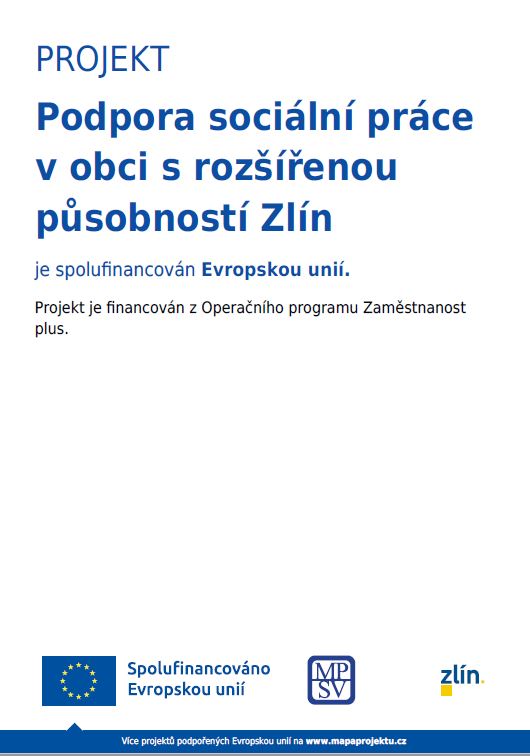 Projekt podporuje výkon sociální práce v obci s rozšířenou působností Zlín. Hlavním cílem projektu je zvýšení dostupnosti sociální práce širší skupině jedinců, kteří jsou ohroženi sociálním vyloučením nebo jinou sociální událostí. Implementace projektu podporující výkon sociální práce bude podpořena personálním posílením současného výkonu sociální práce v obci s rozšířenou působností Zlín.