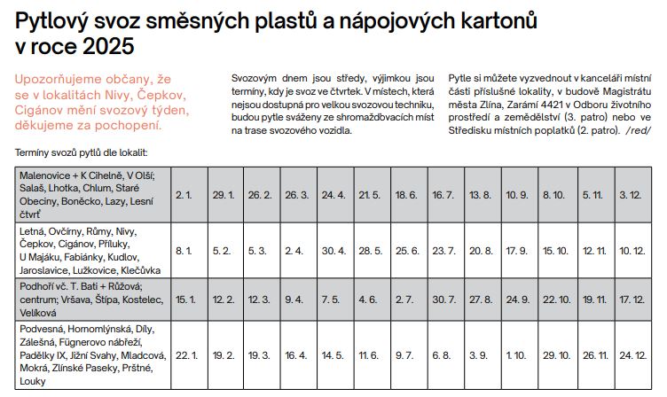Žádáme občany, aby nejlépe večer před dnem svozu uložili pytle na místo obvyklé pro svoz komunálního odpadu. Technické služby Zlín, s.r.o. přichystané pytle sesbírají a odvezou na dotřiďovací linku, kde bude plast roztříděn dle požadavků zpracovatelů.