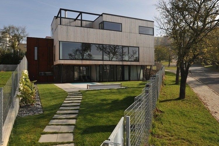 Dům je navržen v proporcích reflektujících okolní zástavbu. Venkovní i vnitřní materiálové řešení je podřízeno přírodním materiálům, z nichž se nejvíce uplatňují obklady z cedru a cortenu – vnější fasády. V interiéru se nejvíce uplatňuje dub, ocelový plech a gletované štukové omítky. Okenní a dveřní otvory jsou navrženy do hliníkových profilů.