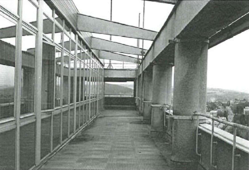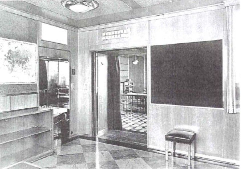 Skutečnou technickou lahůdkou je výtah-kancelář šéfa firmy o rozměrech 6x6 metrů, klimatizovaná, s umývadlem.