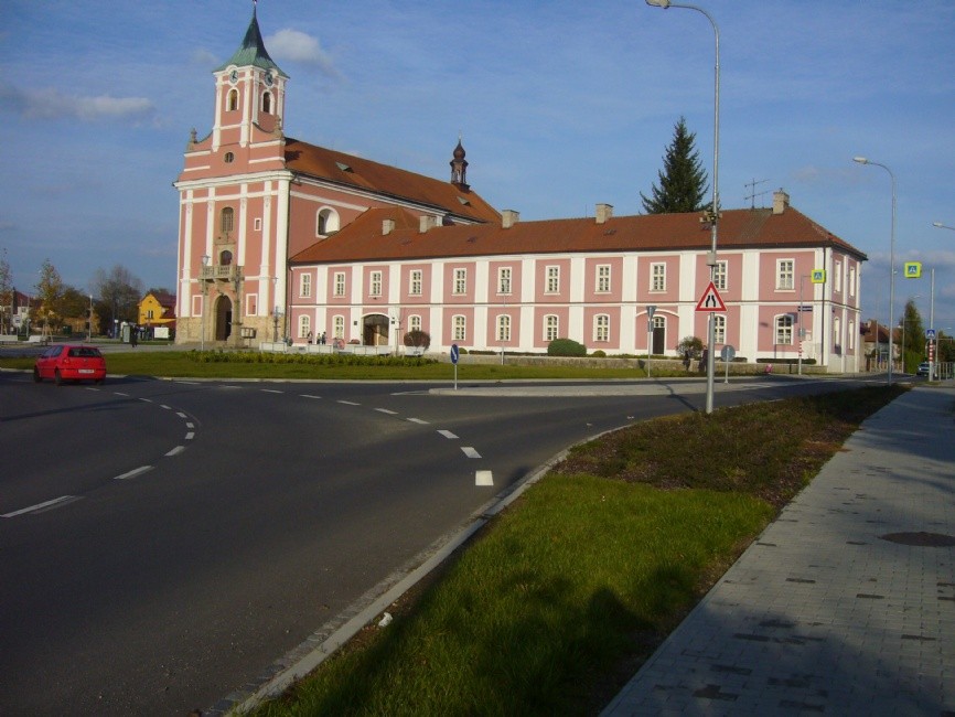 - budova u kostela - fara (původně zamýšlená jako klášter)
