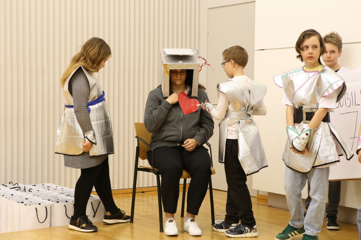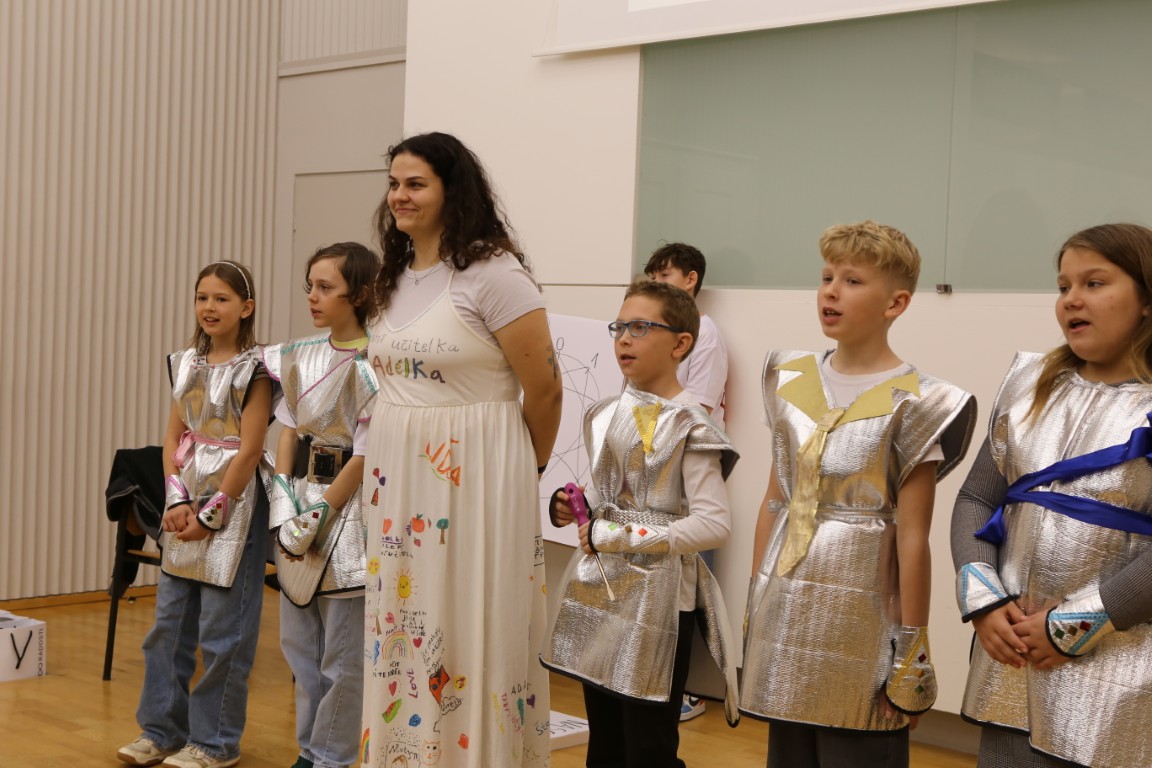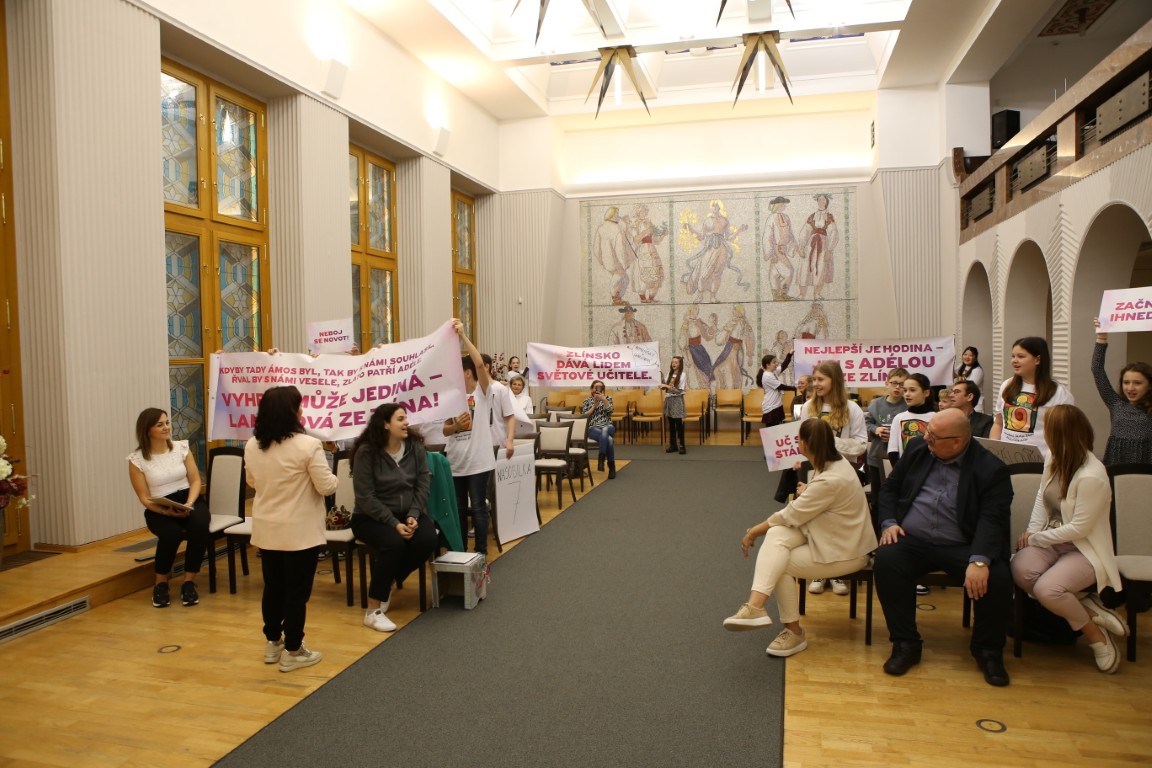 Součástí setkání na radnici bylo promítnutí sestřihu ze soutěže i živé předvedení pětiminutové scénky, se kterou se paní učitelka společně se svými žáky prezentovala ve finále. Jak uvedla čerstvá držitelka Zlatého Ámose pro rok 2026, velký podíl na úspěchu měla v souvislosti s vystoupením vychovatelka Petra Veselá, bez jejíž pomoci by se podle jejích slov jen těžko dostali až do finále. Vychovatelka přijela s několika vystupujícími žáky z 5. A podpořit svou kolegyni do Prahy už den předem, a děti na scénku připravila. V den finále pak do Prahy dorazil i plný autobus školáků ze Zlína. Mezi fanoušky soutěžící učitelky nechyběla ani ředitelka Alena Grajciarová.
