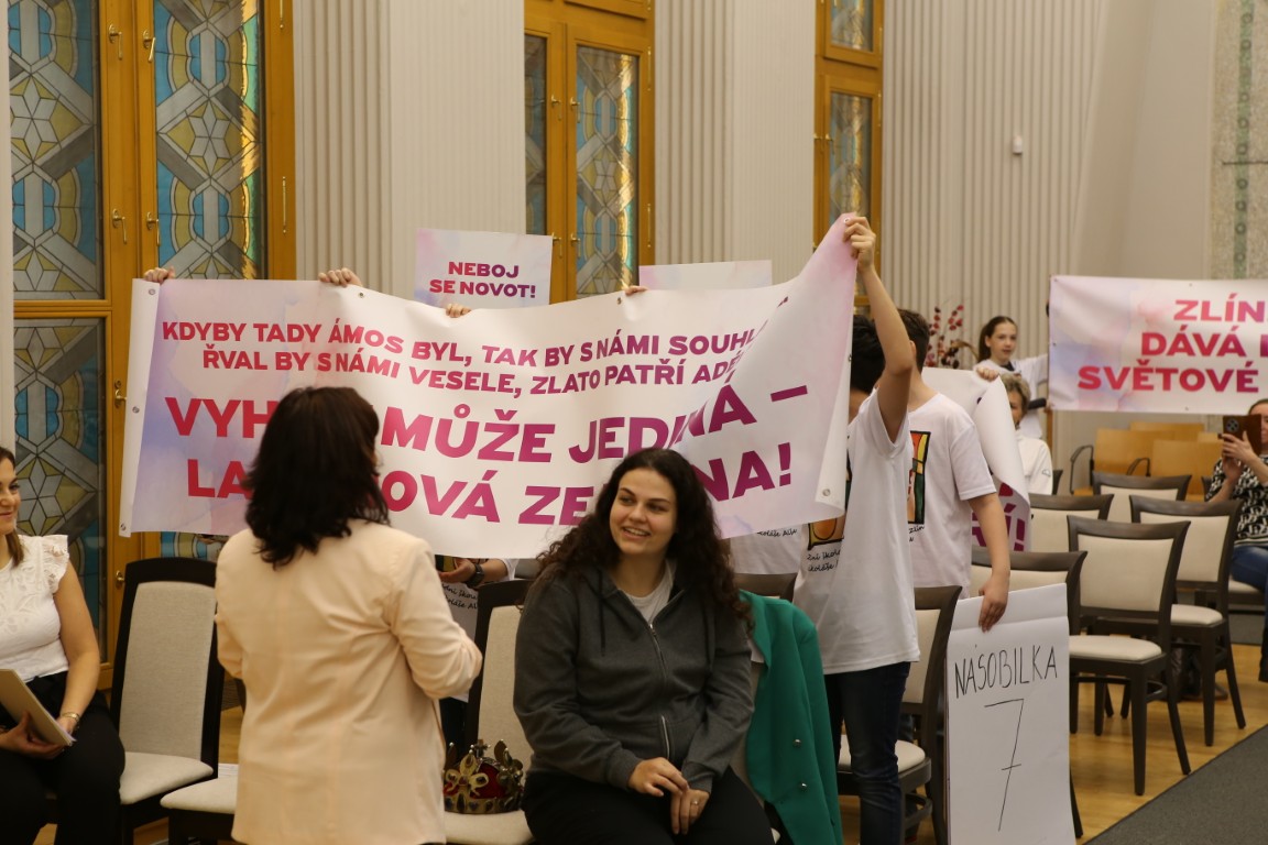 Společně s ní dorazili do obřadní síně také žáci z 5. A, kterým nechyběly transparenty fandící jejich třídní učitelce, dále ředitelka školy Alena Grajciarová a vychovatelka školní družiny Petra Veselá.