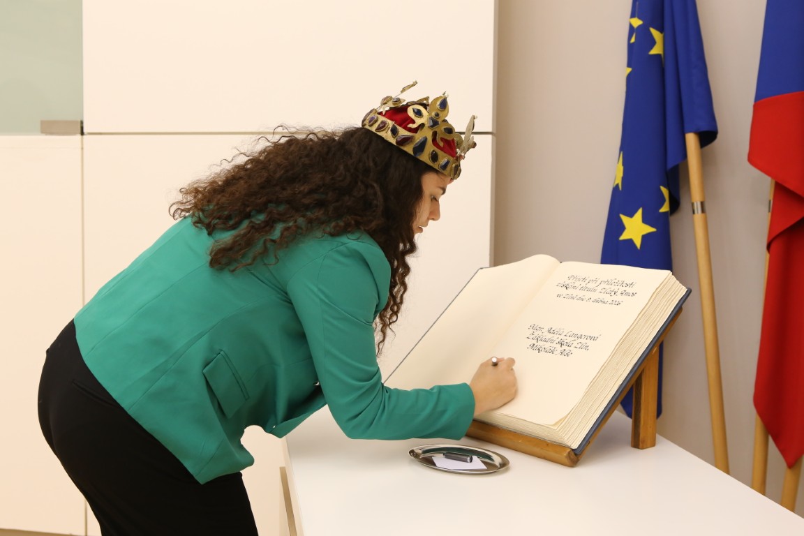 Návštěvu ze školy na Podhoří přijala náměstkyně primátora pro školství a kulturu Martina Hladíková, jež ocenila reprezentaci školy i města a všem zúčastněným poděkovala a pogratulovala k dosaženému úspěchu. Adéla Langerová se při této příležitosti zapsala do kroniky města a od náměstkyně převzala kytici. Páťáci si z dopoledního setkání v obřadní síni odnesli drobné dárky, které jim věnovalo město.